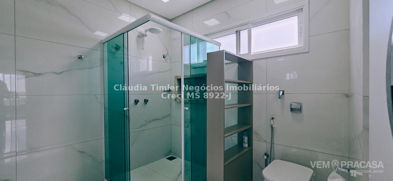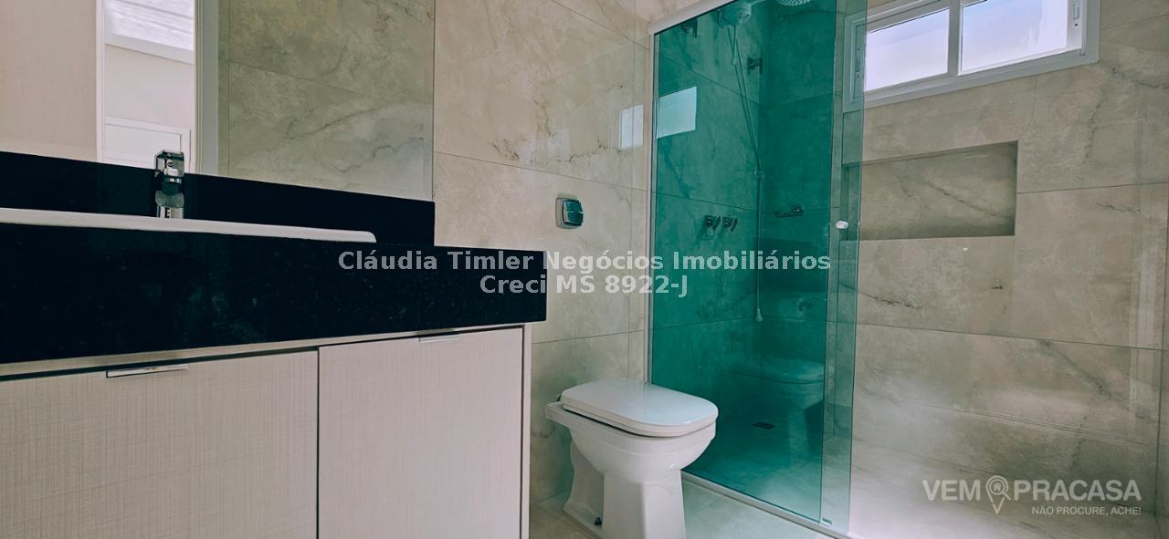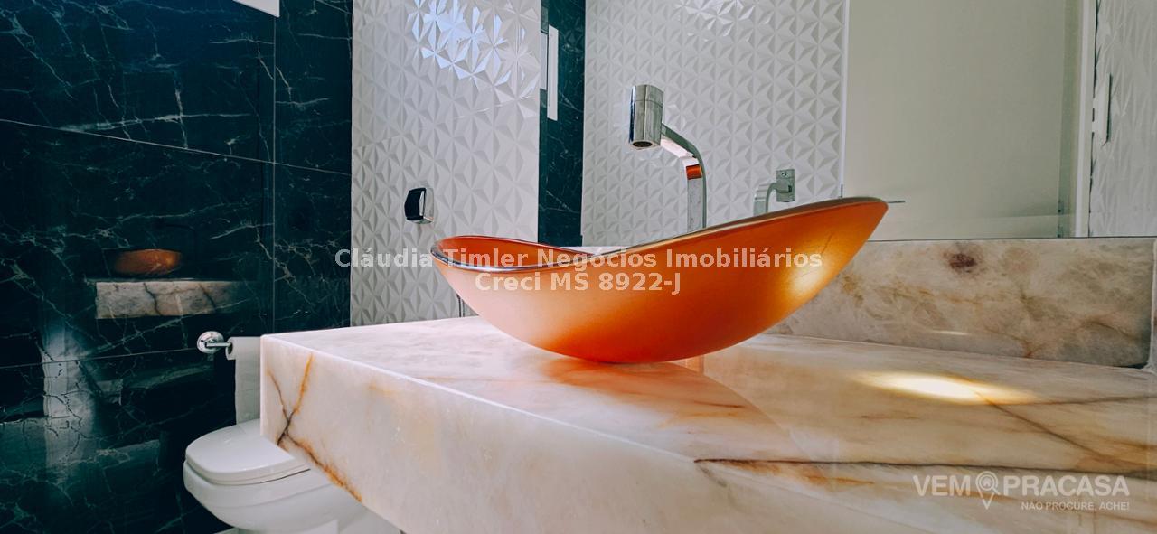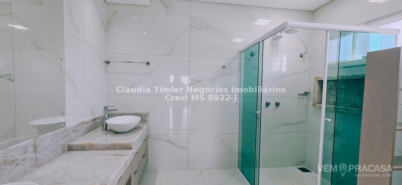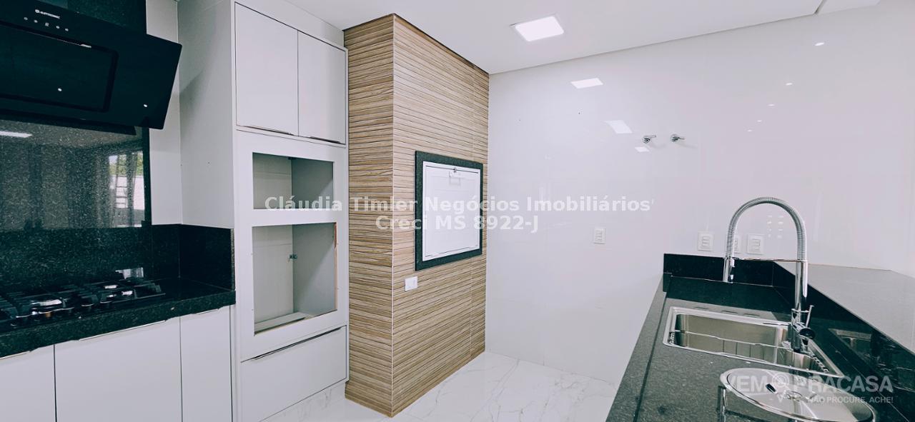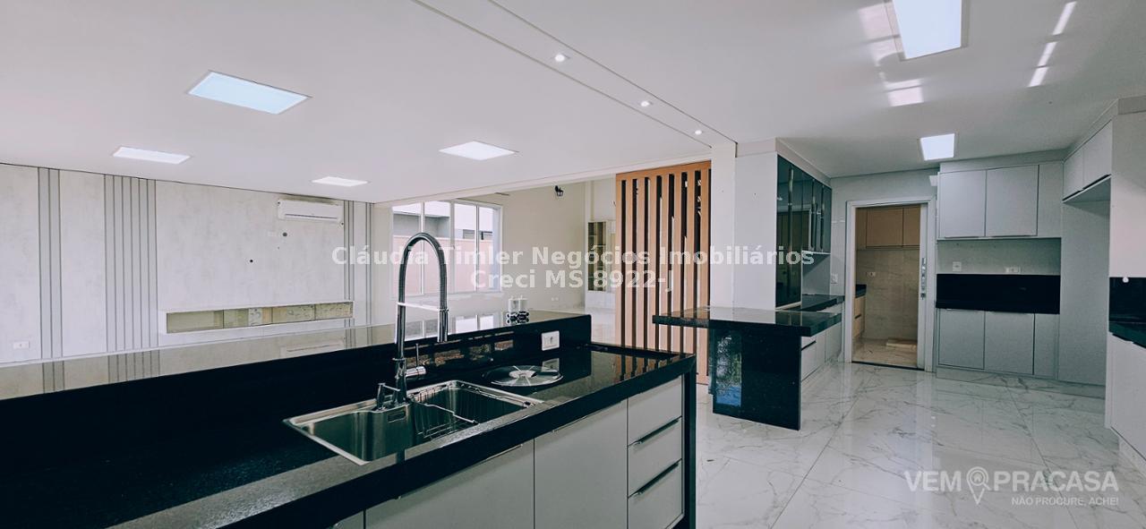 Sobrado de alto padrão com excelente acabamento, sala para 2 ambientes, 03 suítes sendo uma com closet e sacada, gourmet integrado à cozinha e lavanderia ampla.
