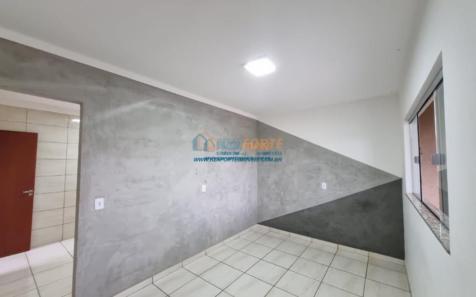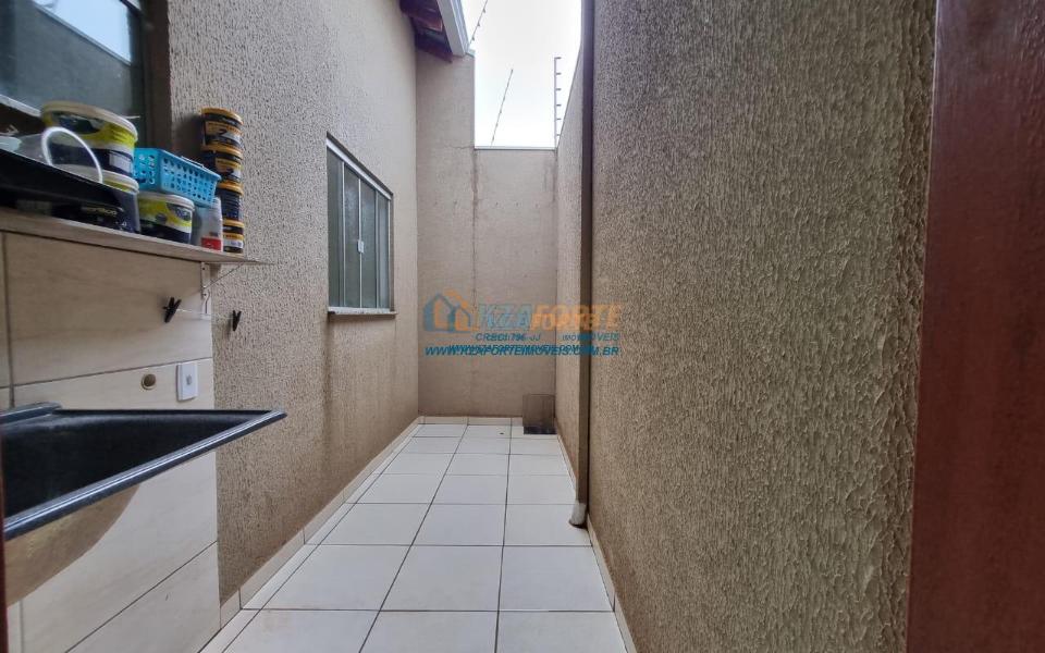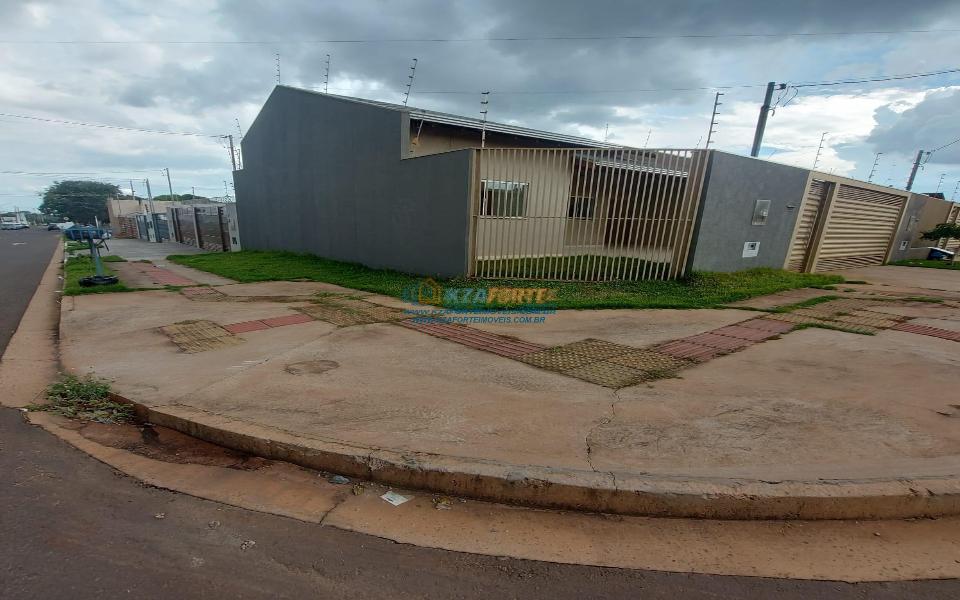 Casa de esquina, com forro de laje, contendo sala de estar com luminária de led, banheiro social com espelho, prateleira, porta toalha de rosto, toalheiro, porta papel higiênico e assento soft close, dois quartos, cozinha, lavanderia com prateleira e lâmpada, área gourmet nos fundos com churrasqueira, bancada e pergolado, varanda na frente com espaço meio coberto para 2 carros e gancho de rede na garagem. Pisos e revestimentos cerâmicos de boa qualidade, pias e bancadas em granito, banheiro com box, todas as janelas de vidro temperado, telhado com calhas, portão de elevação com motor e travas. IPTU incluso.