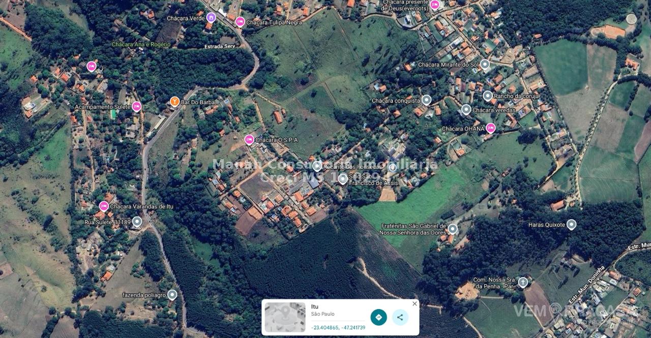 Bela Chácara na Zona Rural de Itú - SP + 1 Terreno de esquina adjacente a propriedade. A Chácara possui 1.000 m2 de terreno e uma casa toda avarandada com 400 m2 de área construida, contendo 1 boa sala de estar e 1 ampla suite, 1 quarto, 1 wc social e uma ótima cozinha, churrasqueira, fogão e forno a lenha, poço semi artesiano e uma Edícula com 1 suite, cozinha e mais uma oficina para guarda de ferramentas. O Terreno adjacente a chácara possui 1.600 m2 de esquina, plano, limpo, todo cercado e sem árvores grandes para derrrubar, ou seja está pronto para construir. A propriedade situa-se a 11 km do centro de Itú, atendida pela estrada asfaltada "Doninha" vulgo estrada do Pinheirinho e dista apenas 500 metros da mesma por estrada de chão. Localizada em região de planalto com uma bela vista para as cidades de Itú e Sorocaba, considerada região de Chácaras nobres, tendo como referências o Haras Quixote de "Olavo Setúbal", Fraternidade São Gabriel, Acampamento Sulete, Recanto dos Fonsecas e Sítio São Francisco de Assis. A Propriedade Será negociada de PORTEIRA FECHADA e ainda Escuta-se propostas de carros no negócio. Maiores detalhes e agendamento de visitas entre em contato pelo Cel: 067-99334-2660.