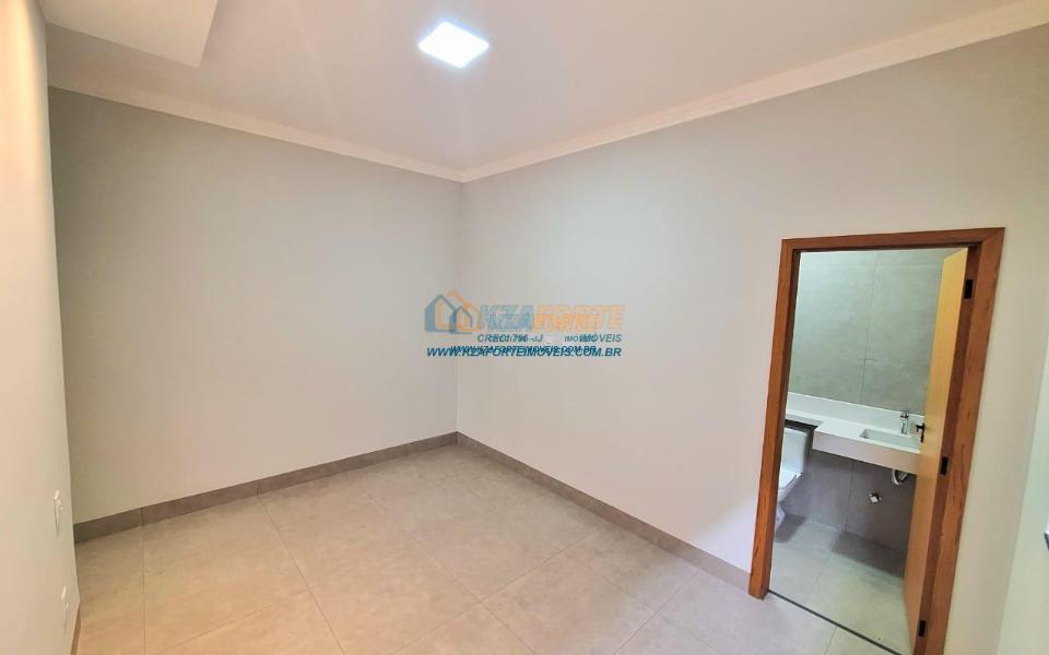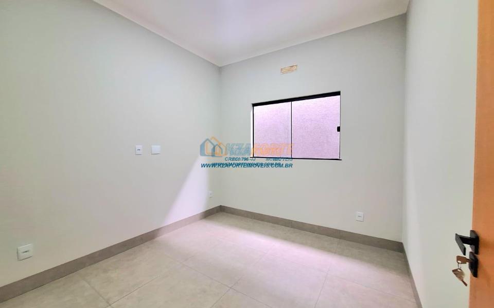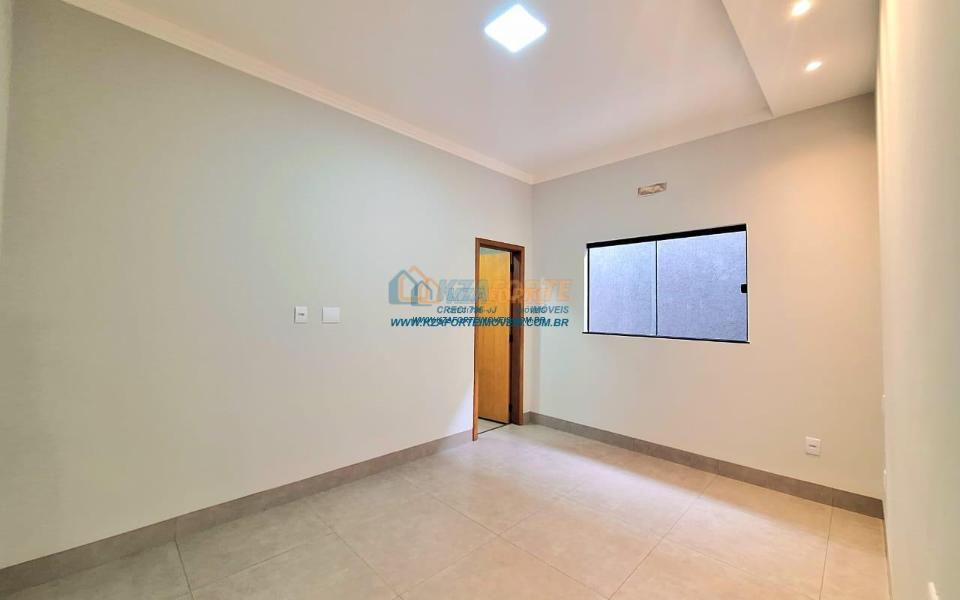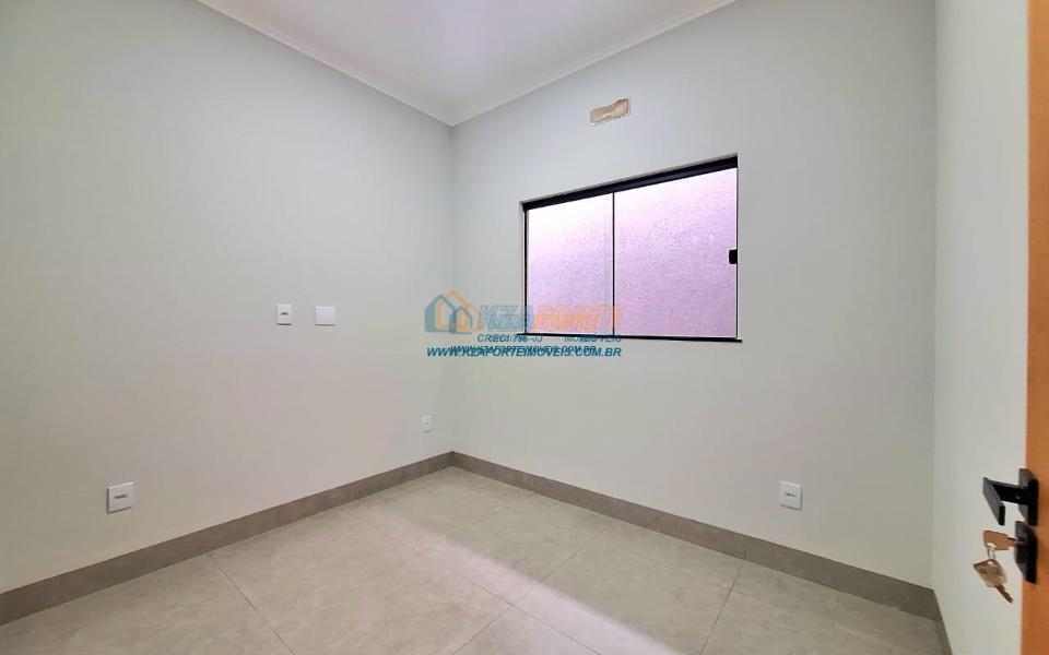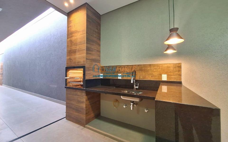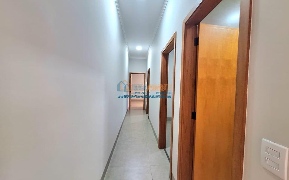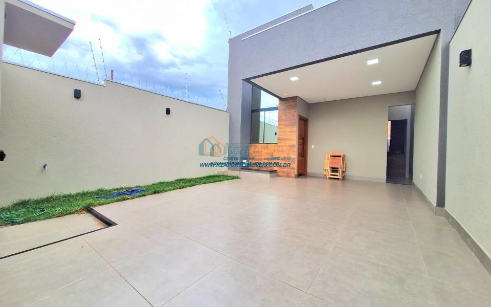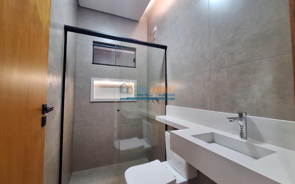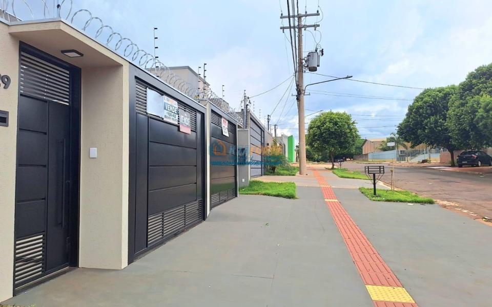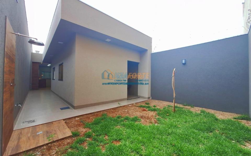 Casa nova com acabamento de alto padrão, pé direito duplo, forro de laje, teto com rebaixamento em gesso e iluminação em led, acabamento em mármore preto, pisos em porcelanato, sala de estar, sala de jantar, cozinha independente da sala, três quartos sendo um deles uma suíte, todas as torneiras monocomando, vidros temperados em todos os ambientes, banheiro com box, pré instalação de água quente, pré instalação para ar condicionado em todos os ambientes, área gourmet com churrasqueira, cerca elétrica, alarme, concertina nos muros, portão de elevação, interfone, garagem para 2 carros sendo 1 coberto. Cozinha, área gourmet e banheiros com mármore branco. Excelente localização, próxima ao Supermercado Assaí e Shopping Norte Sul Plaza. Aceita financiamento.