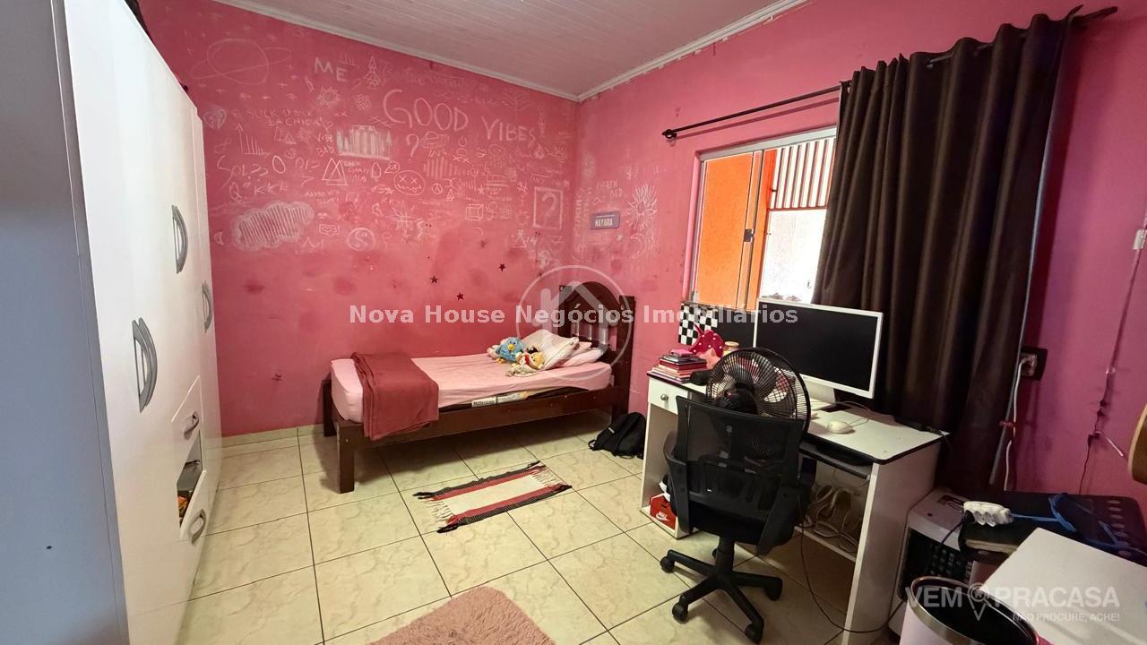 Descrição: Casa contendo 2 quartos (sendo 1 suíte) no corpo principal da casa, mais 1 quarto e banheiro em edícula anexa. Sala de estar, cozinha, banheiro social, 2 varandas e área de serviço coberta. Garagem para 5 carros (2 cobertas). Amplo quintal com plantas frutíferas e canil. Terreno grande e ótima localização Aceita financiamento. Agende sua visita