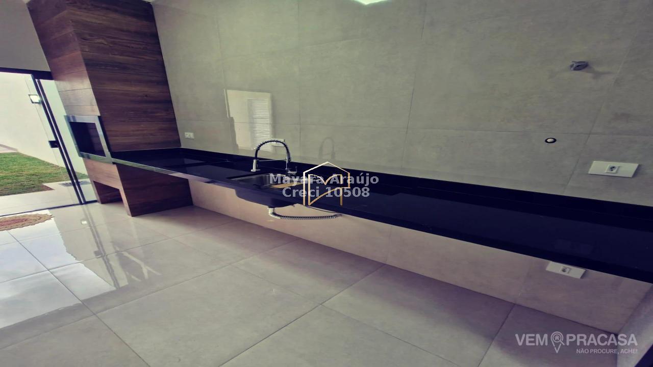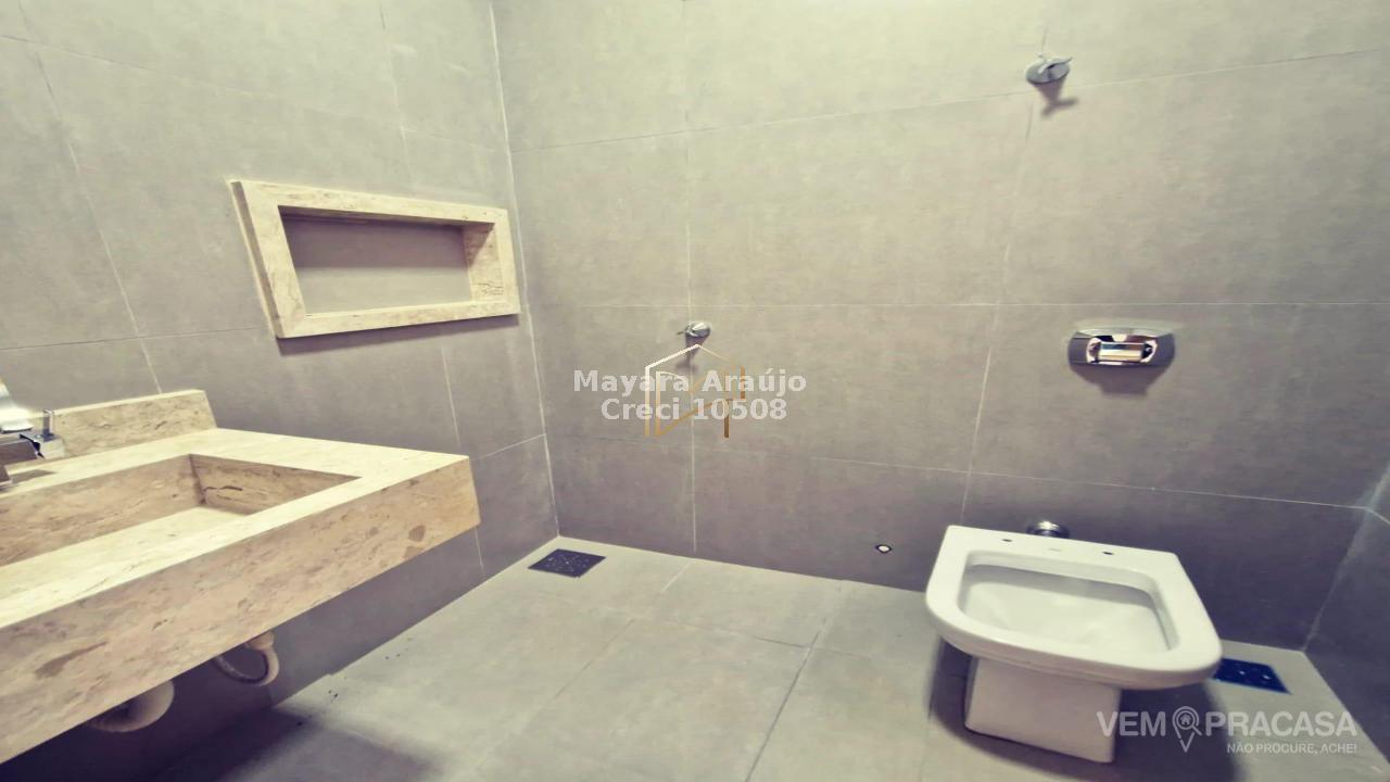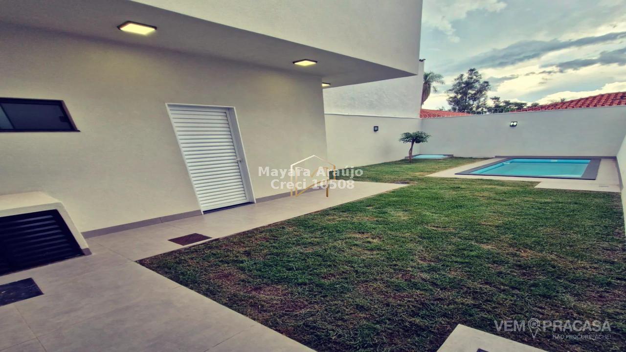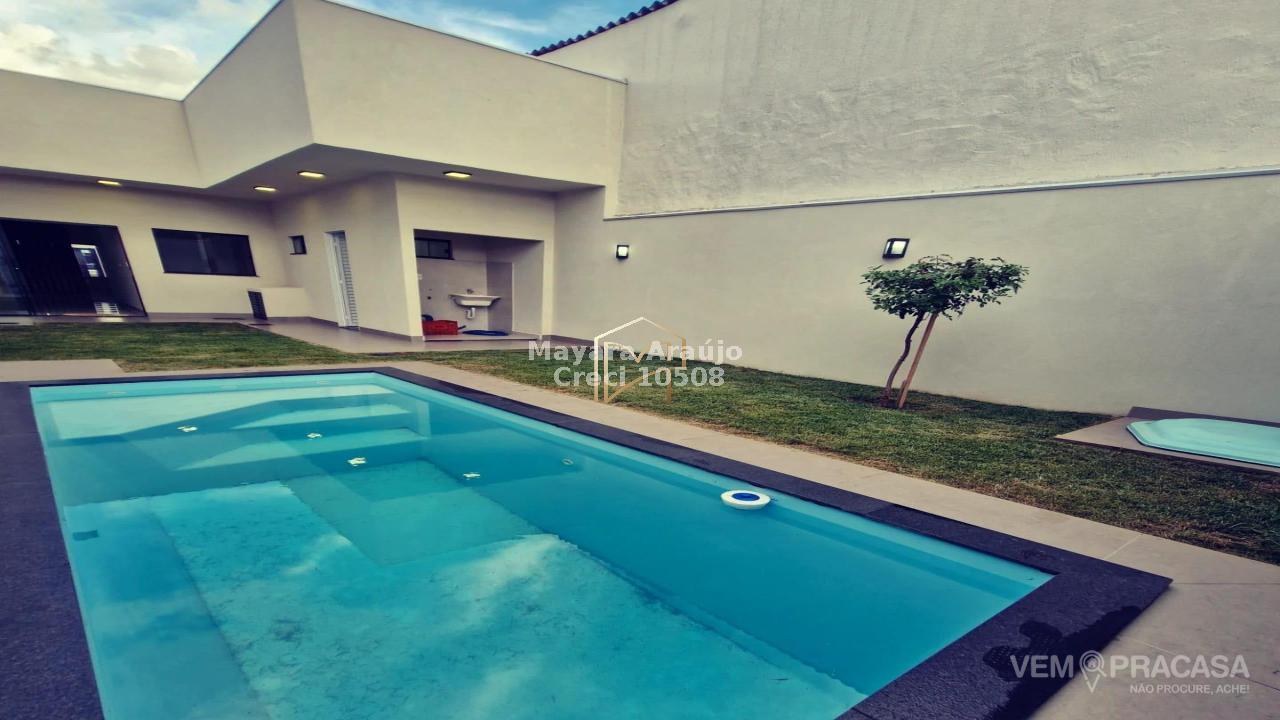 Imóvel com 216m² de área total, e 105m² de área construída - 03 quartos, sendo uma suíte + sala individual para 02 ambientes com pé direito duplo + cozinha integrada com área gourmet e ampla bancada de mármore + jardim de inverno + piscina + lavabo + garagem para 03 carros - sobra de terreno nos fundos.