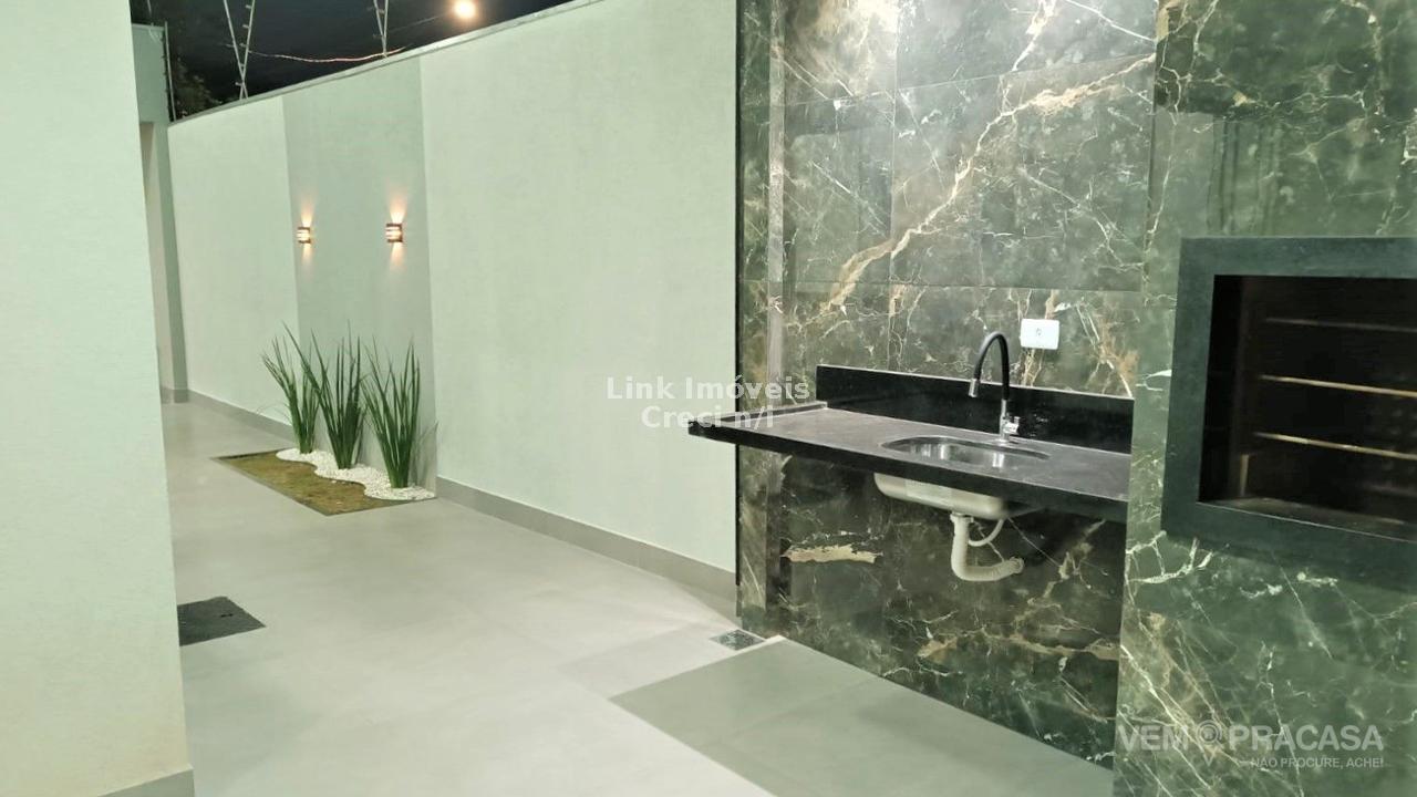 Linda casa com excelente localização. Imóvel composto por 3 quartos sendo 1 suíte, sala ampla, cozinha moderna, wc social, área de serviço coberta, espaço gourmet com churrasqueira, lavabo, quintal, varanda, jardim e vaga de garagem.