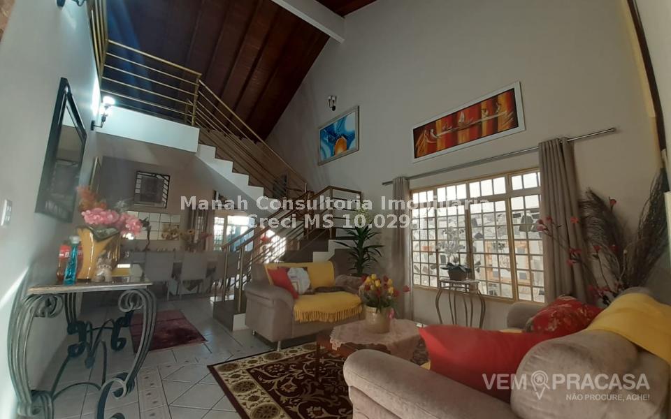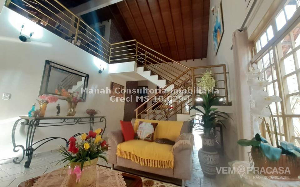 Requinte e conforto no Carandá Bosque com lazer completo, provida de Sala de Estar e de Jantar, Lavabo, Mezanino com escritório sala de TV, 1 quarto e 1 wc, Estrutura com Pé Direito Alto, possui ainda 1 Apartamento e 2 Quartos, WC social, Ampla Cozinha com planejados, Espaço Ftiness, Área de serviços coberta, Dependência de Empregada com wc, Despensa, Requintada Área Gourmet fechada com blindex, bom espaço de quintal com bastante verde, bela Piscina com Cascata, corredores nas duas Laterais da casa, amplo Portão de Elevação e portão social, 2 Vagas de garagem cobertas e 2 descobertos. Imóvel localizado a poucos metros do Parque Sóter e da Rua Vitório Zeola, vizinhança de alto padrão social, com amplo comércio local, mercados, escolas e igrejas. Documentação perfeita para financiamento, e estuda-se proposta de bens na negociação. Maiores detalhes e agendamento de visitas, entre em contato com o corretor MARIVALDO ARRUDA pelos telefones 067-9-9687-6194 / 9-9334-2660 WhatsApp, e não perca esta ótima oportunidade de morar bem. MANAH IMÓVEIS (67) 3306-1205