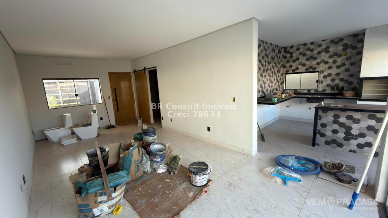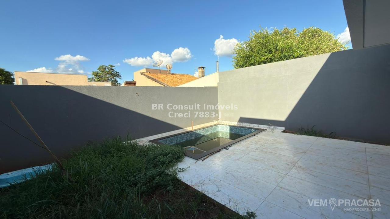 Casa nova com 3 quartos, sendo uma suíte com closet, sala de estar ampla, cozinha com bancada em "L" e ilha de granito, churrasqueira, piscina, área de serviço coberta e WC de serviço. Aceita propostas, financiamento. Fica a meia quadra do asfalto. É obrigatória a contratação do seguro incêndio e vendaval. Não aceitamos caução.