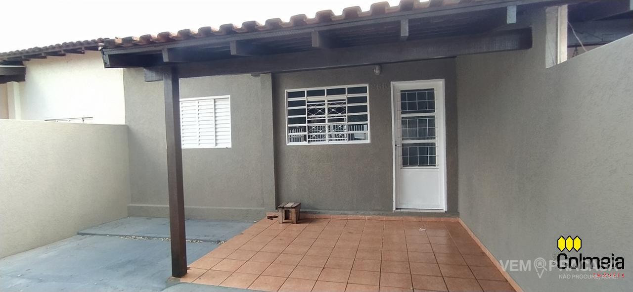 Sala de estar, dois quartos, banheiro social, cozinha, área de serviço coberta, garagem para um veículo, cerca elétrica.