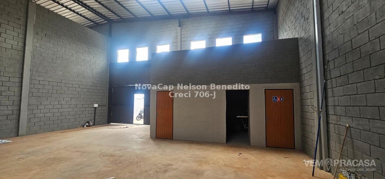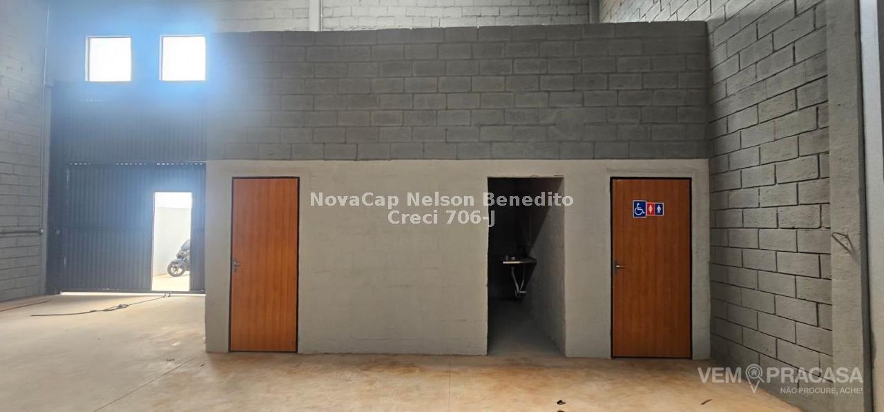 Salão amplo de esquina com duas entradas, com escritório e banheiro social. Portões de 5,70 m de largura por 4,5 m de altura. Pé direito de 7 m de altura