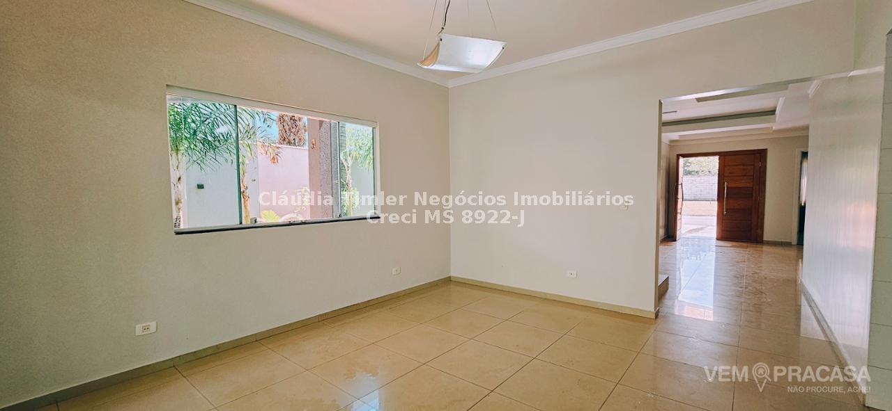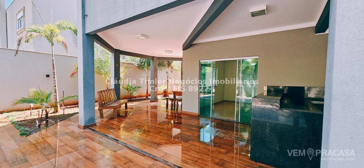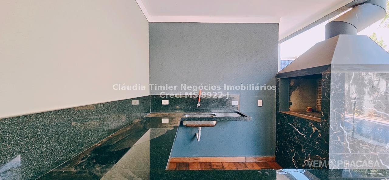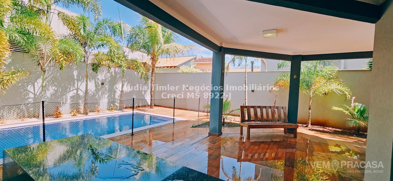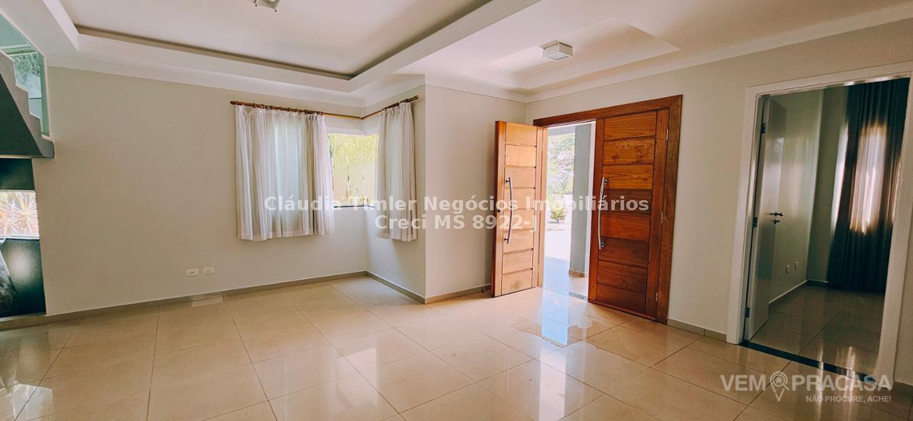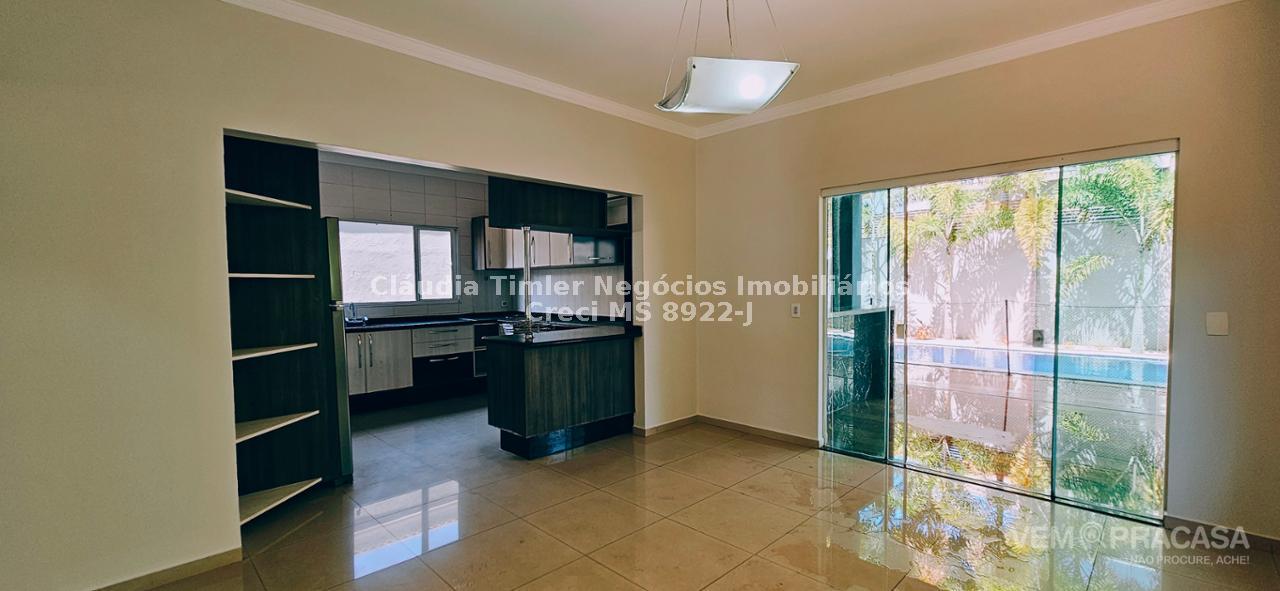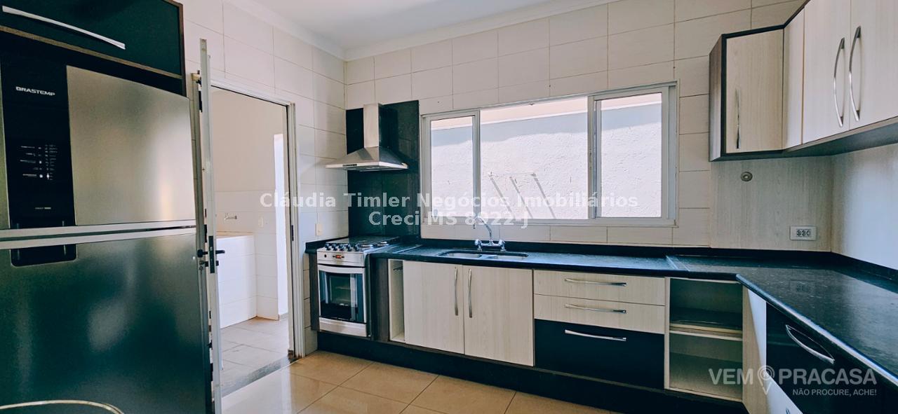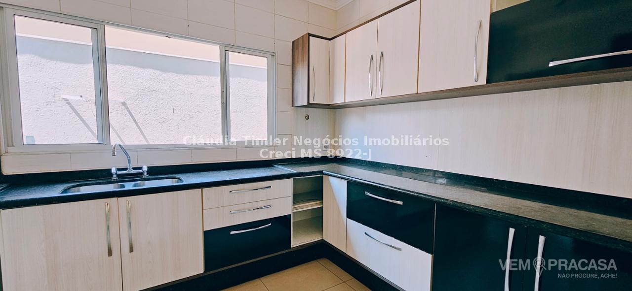 Piso inferior: sala de TV com painel, sala de estar, lavabo, sala para escritório com painel e ar condicionado, sala de jantar, cozinha com armários planejados, geladeira, fogão e coifa, lavanderia, despensa com prateleira.