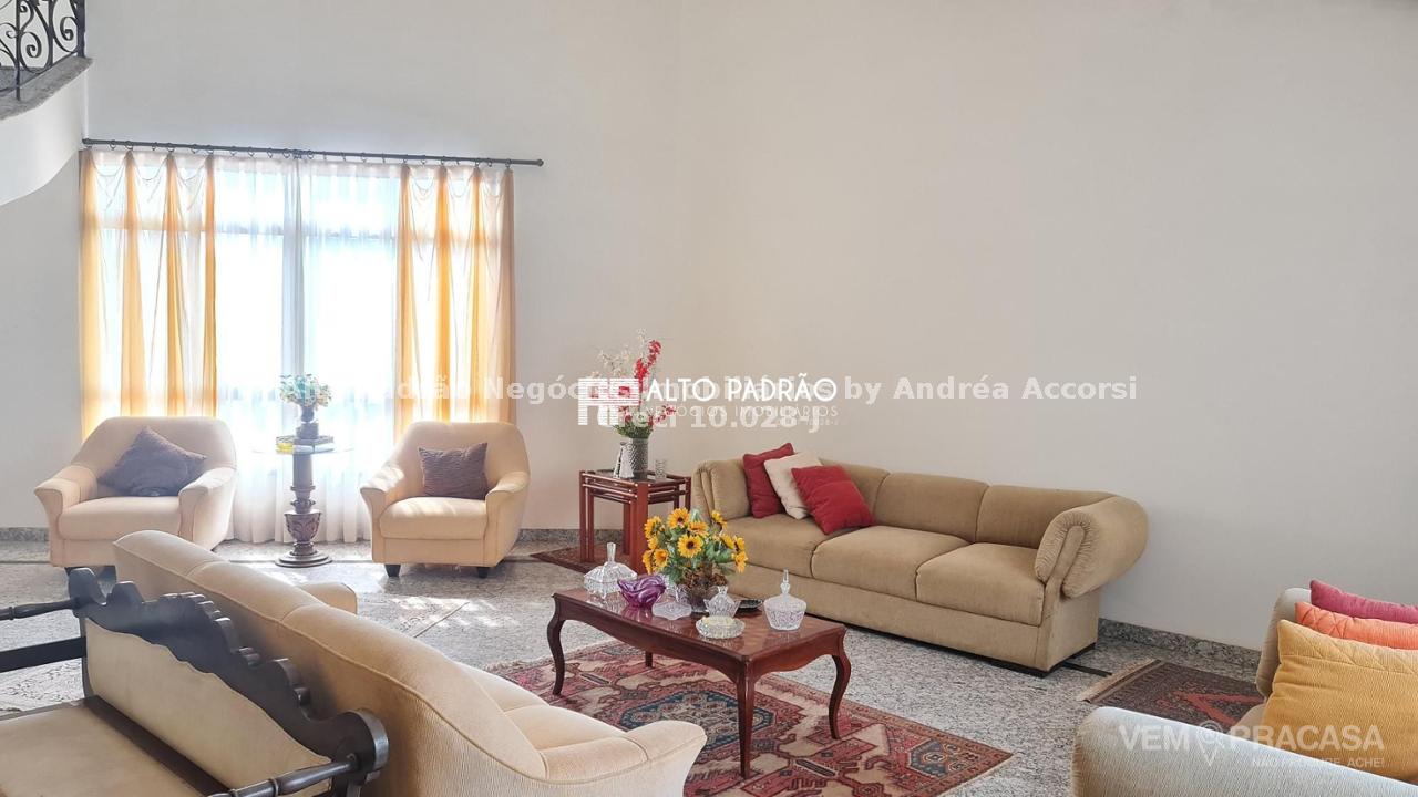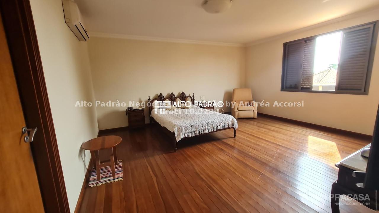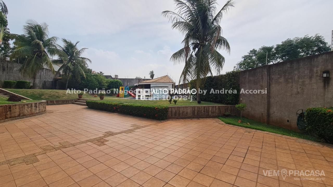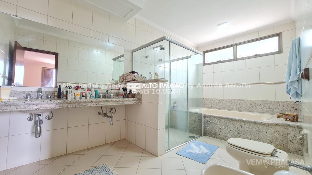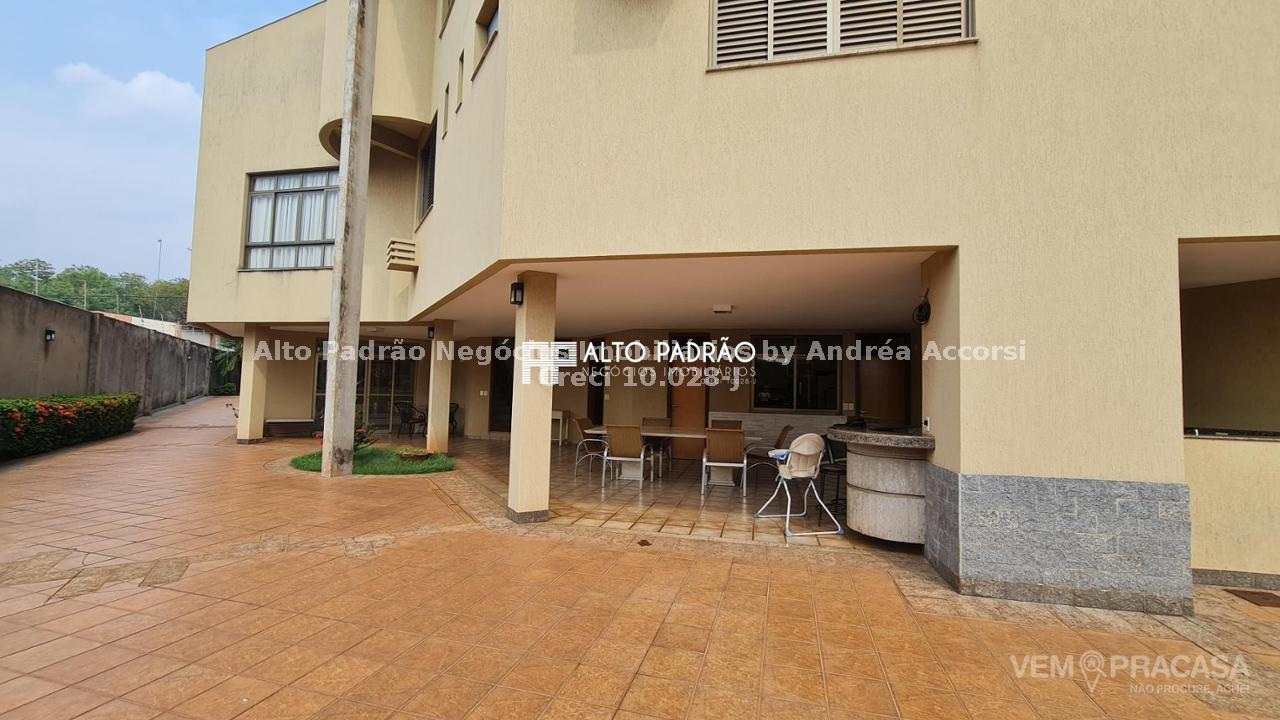Sobrado amplo com 3 pavimentos. Pavimento térreo: área de lazer com muito verde, árvores frutíferas, piscina com cascata, espaço gourmet, churrasqueira, cozinha e brinquedoteca. Pavimento superior 1: 4 suítes, sala de jantar, sala de TV, cozinha e lavanderia. Pavimento superior 2: sala ampla com lareira e 1 banheiro.
