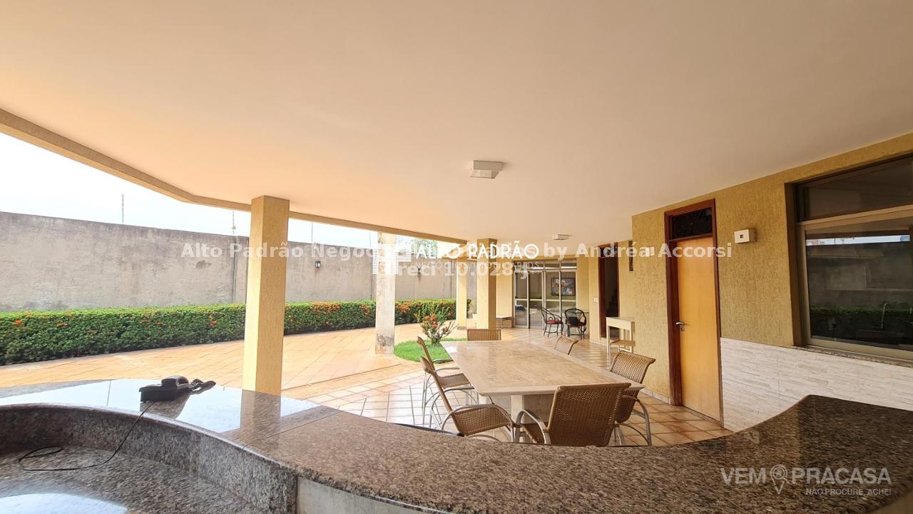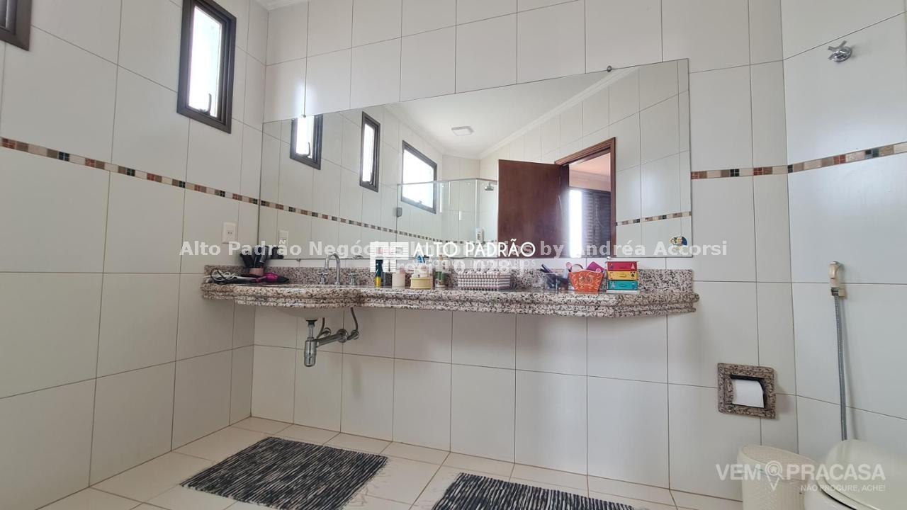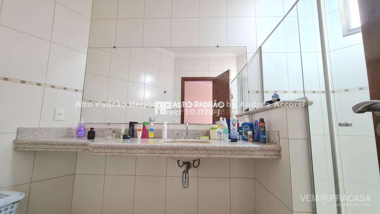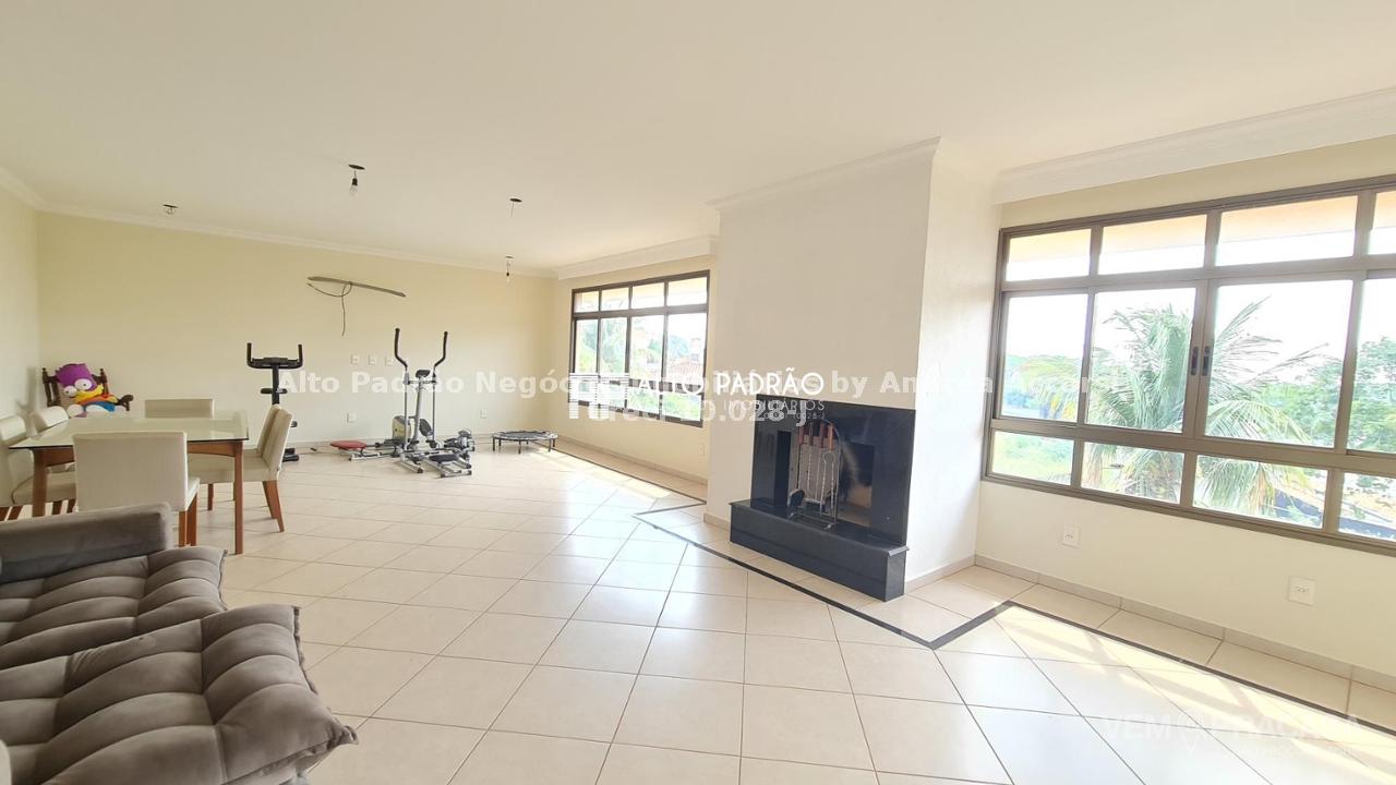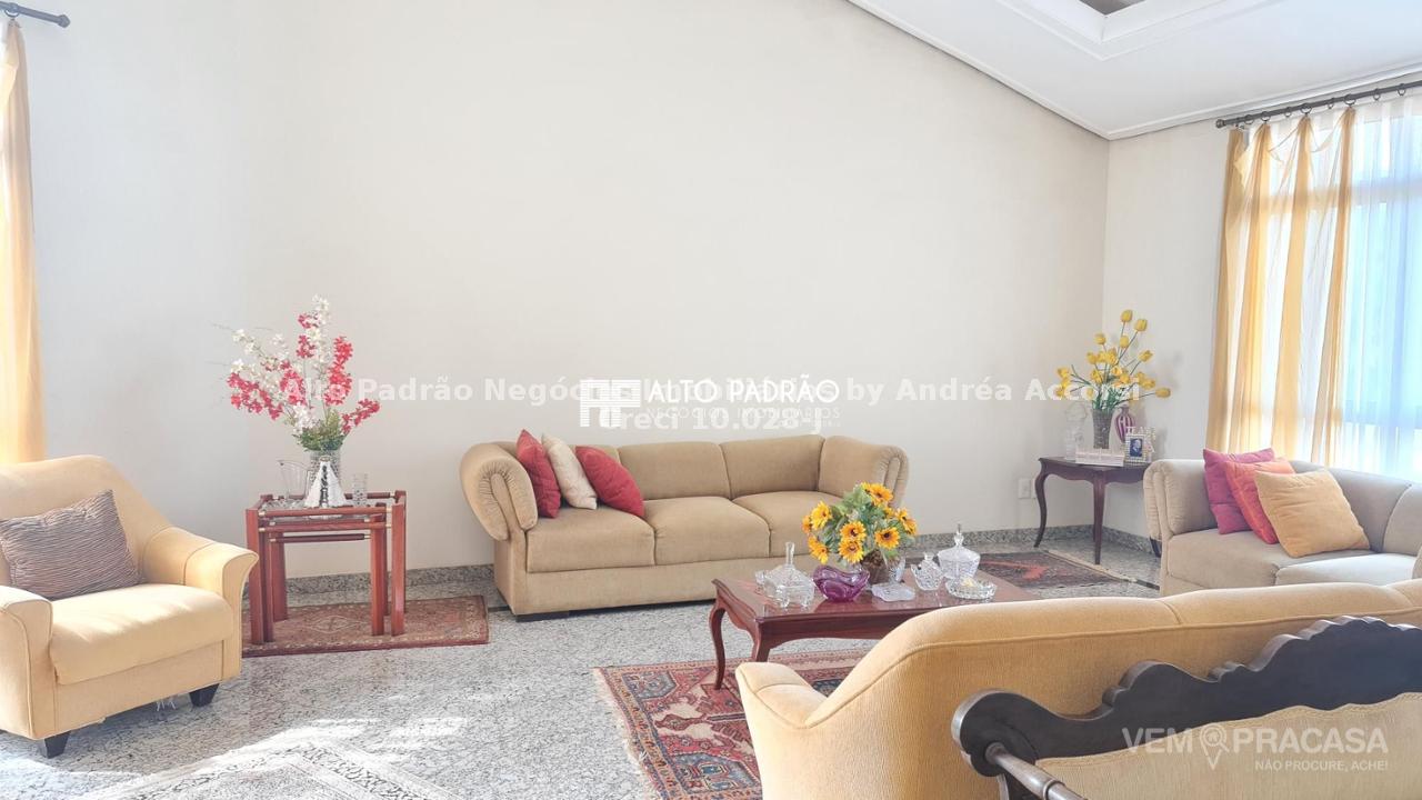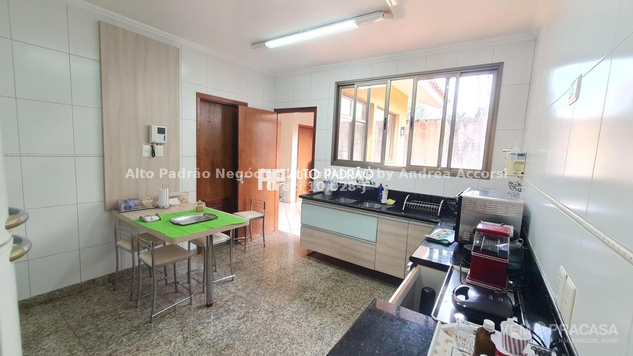 Sobrado amplo com 3 pavimentos. Pavimento térreo: área de lazer com muito verde, árvores frutíferas, piscina com cascata, espaço gourmet, churrasqueira, cozinha e brinquedoteca. Pavimento superior 1: 4 suítes, sala de jantar, sala de TV, cozinha e lavanderia. Pavimento superior 2: sala ampla com lareira e 1 banheiro.
