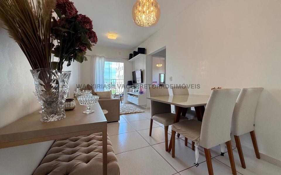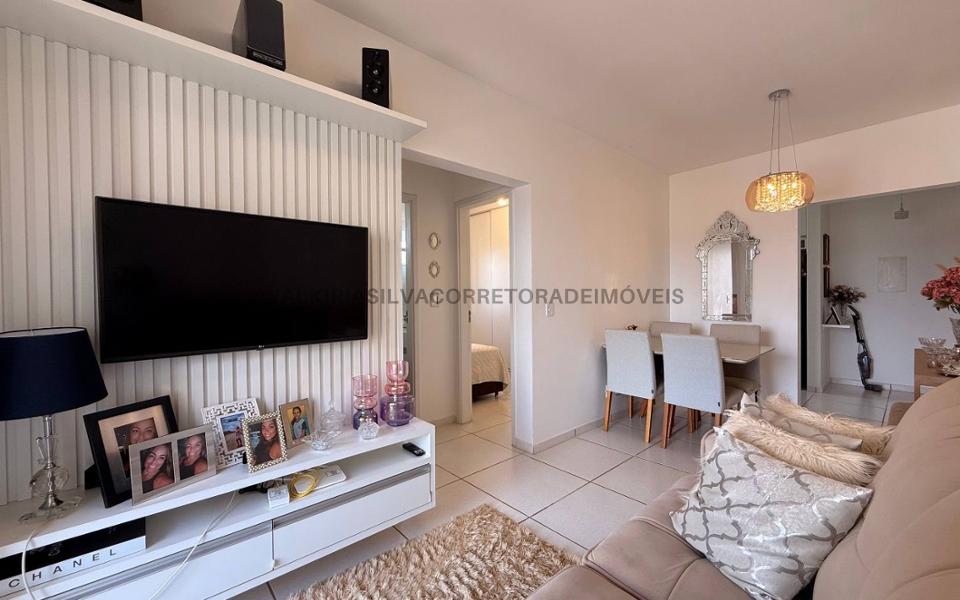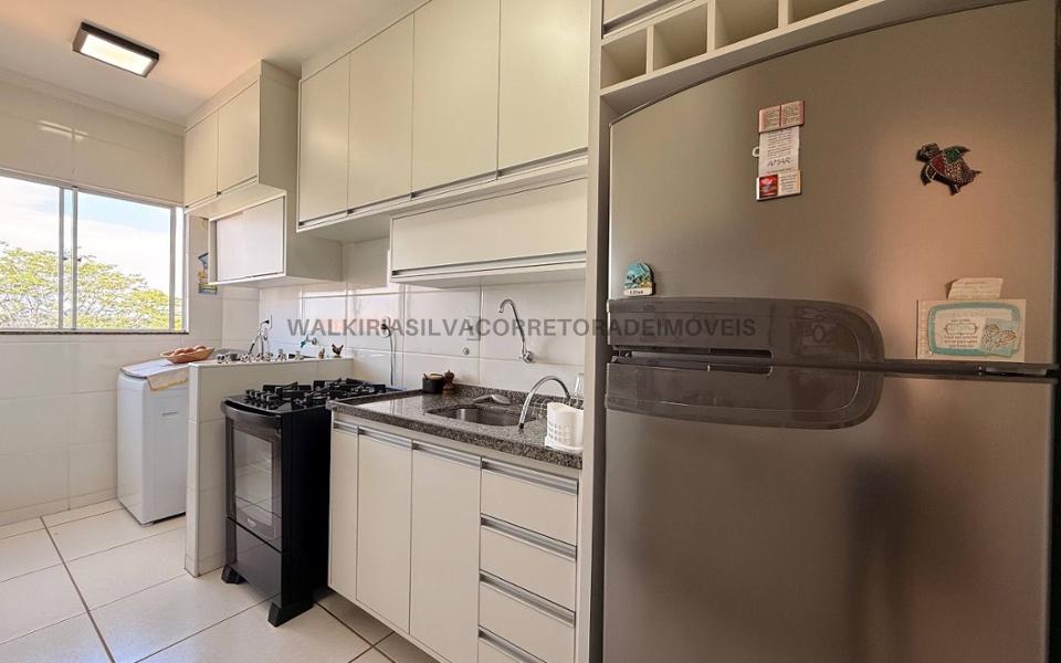 Apartamento com sala de TV aconchegante, sacada, banheiro social, dois quartos sendo um deles com armário embutido, cozinha integrada à lavanderia, toda planejada. O condomínio oferece portaria 24 horas, elevador, área gourmet para momentos de lazer, quadra esportiva e um prático mercadinho 24 horas, ideal para atender às necessidades do dia a dia com comodidade. Assessoria completa para o seu financiamento.