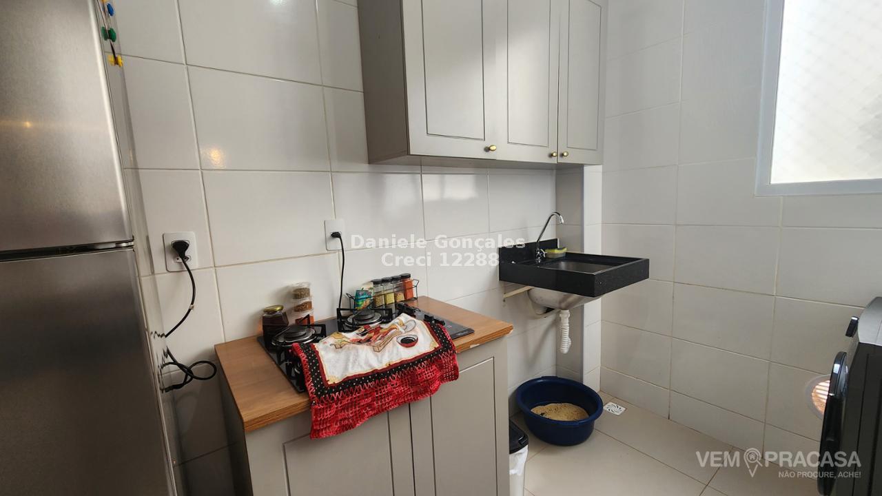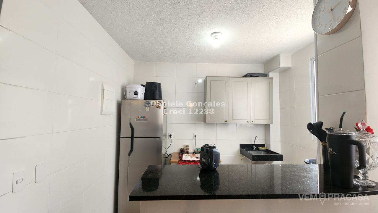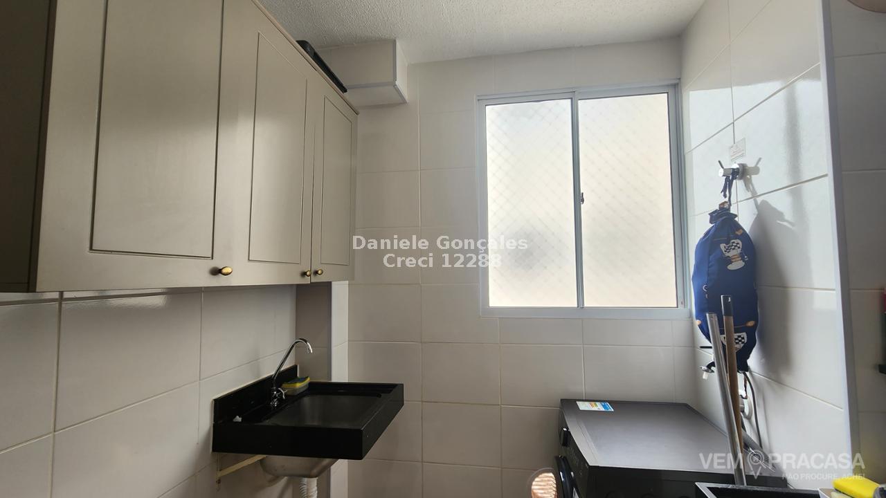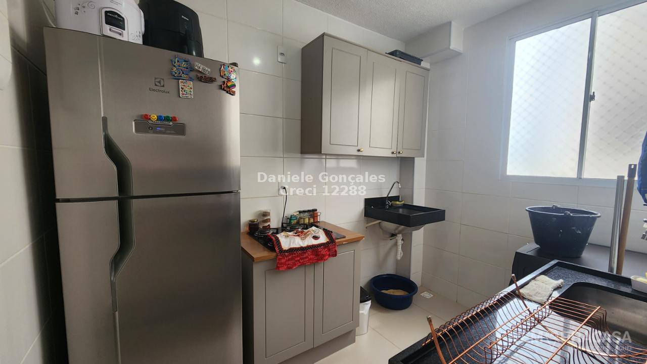 Este apartamento no 4º andar possui dois quartos, banheiro social com box, sala para dois ambientes, cozinha rica em armários e lavanderia. Inclui uma vaga de garagem descoberta. O condomínio oferece portaria 24h, piscina, salão de festas, playground e área verde.