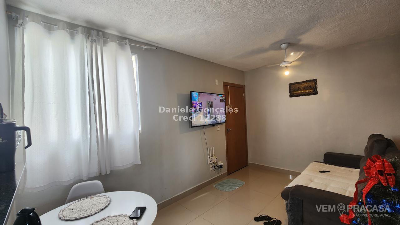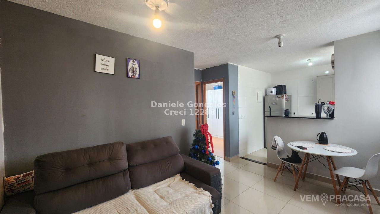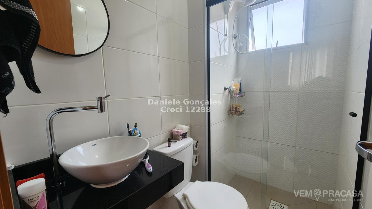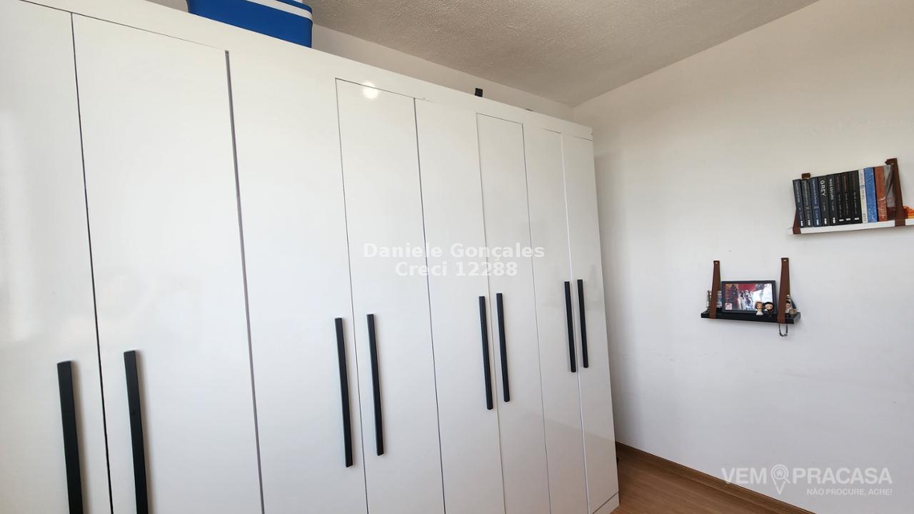 Este apartamento no 4º andar possui dois quartos, banheiro social com box, sala para dois ambientes, cozinha rica em armários e lavanderia. Inclui uma vaga de garagem descoberta. O condomínio oferece portaria 24h, piscina, salão de festas, playground e área verde.