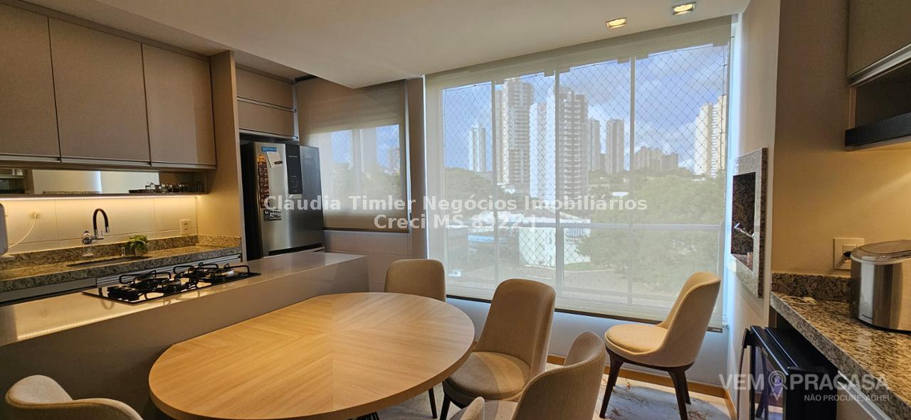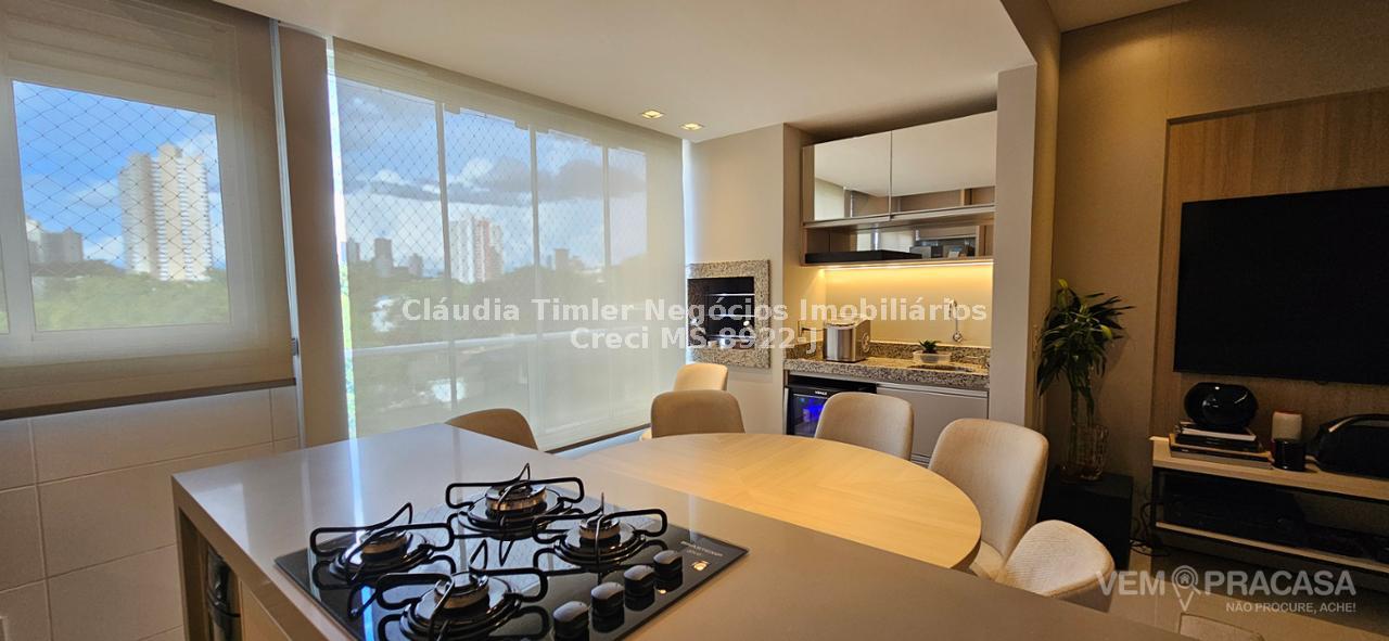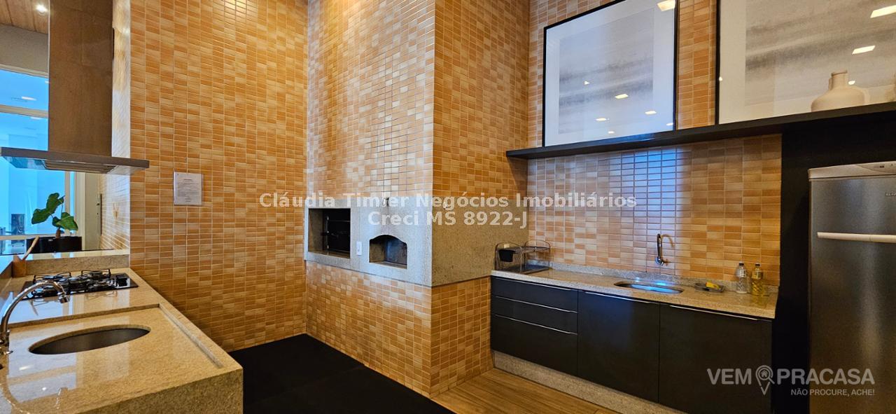Cozinha, integrada com sacada gourmet com churrasqueira;