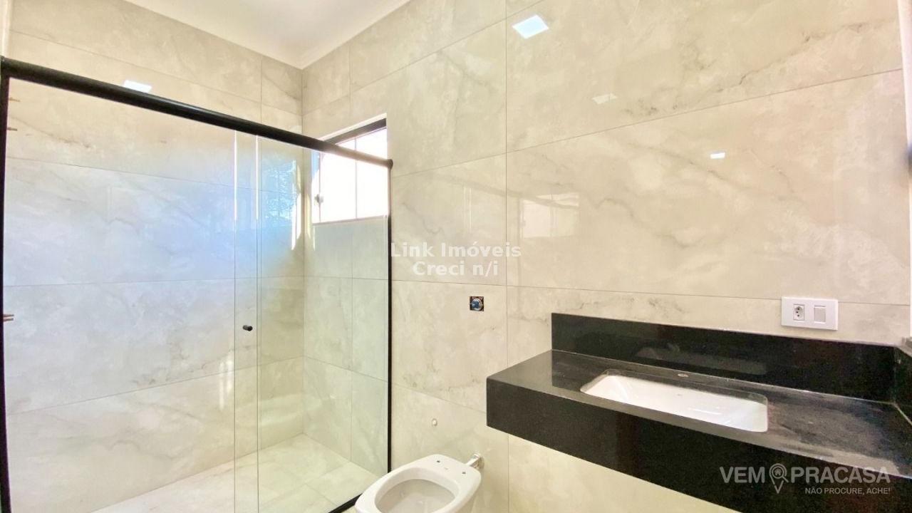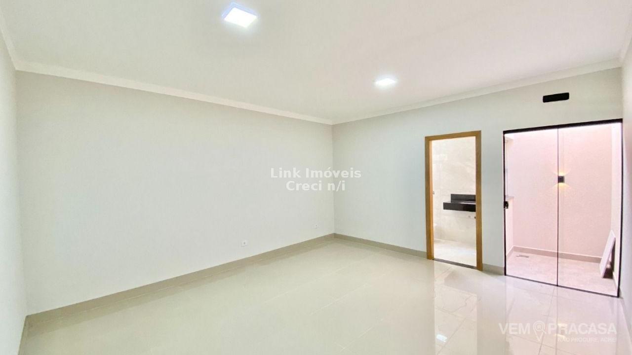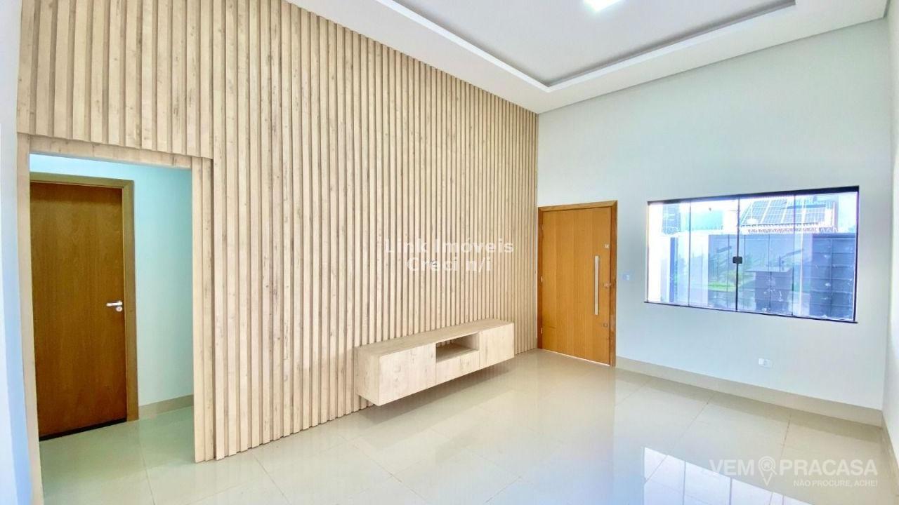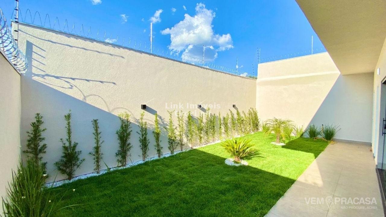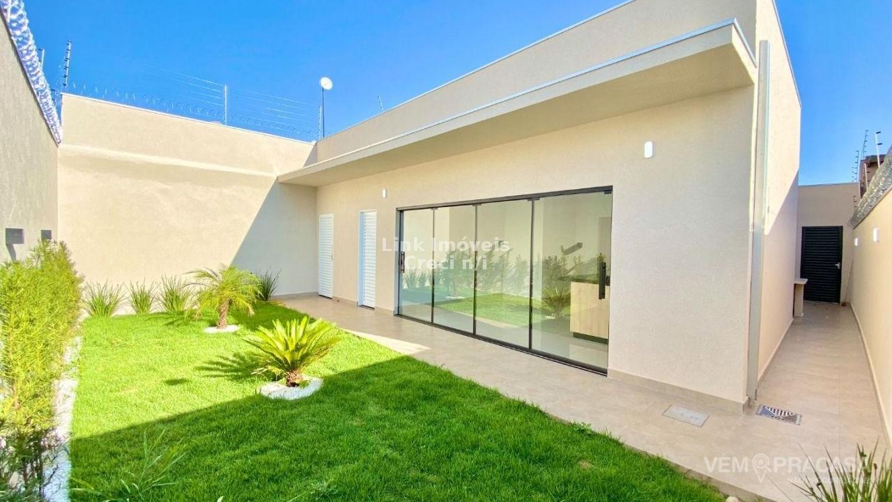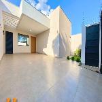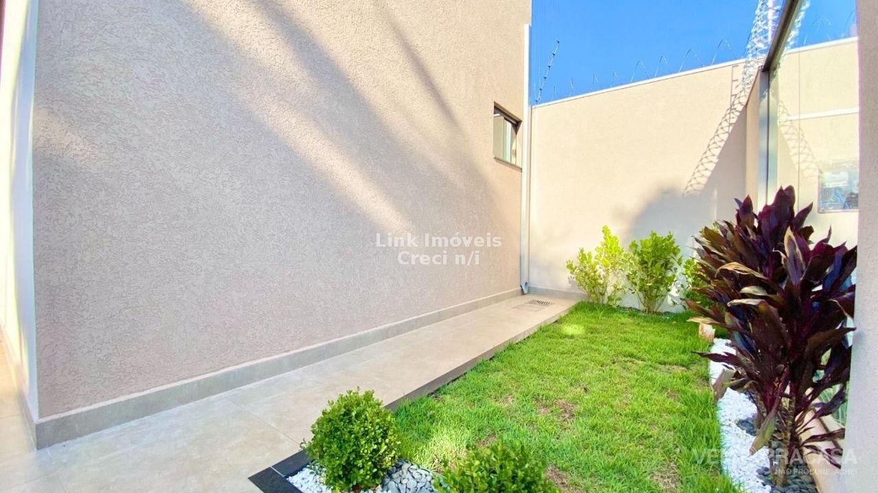 Casa com excelente projeto, uma suítes ampla, com jardim de inverno, dois quartos grandes, banheiro social grande, sala ampla com pé direito alto painel de madeira em uma das paredes da sala com porta de correr que separa área intima da casa, cozinha e área gourmet com ambientes integrados e moveis planejados, ilha entregue com tampo de mármore preto com ponto de gás e elétrica, corredor lateral, quintal amplo, pode ser colocado piscina, pontos de ar condicionado com dreno já pré instalados métodos os ambientes, acabamento de gesso na sala e quartos, portão de elevação com 4m de vasão livre, portão social, fachada moderna.