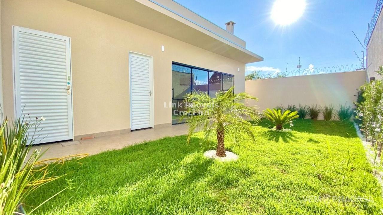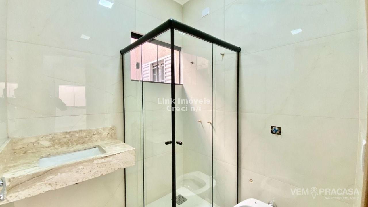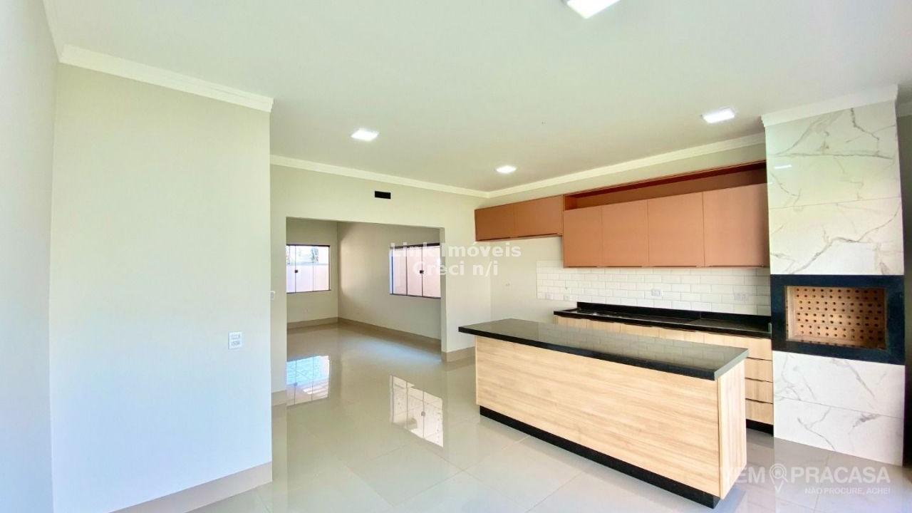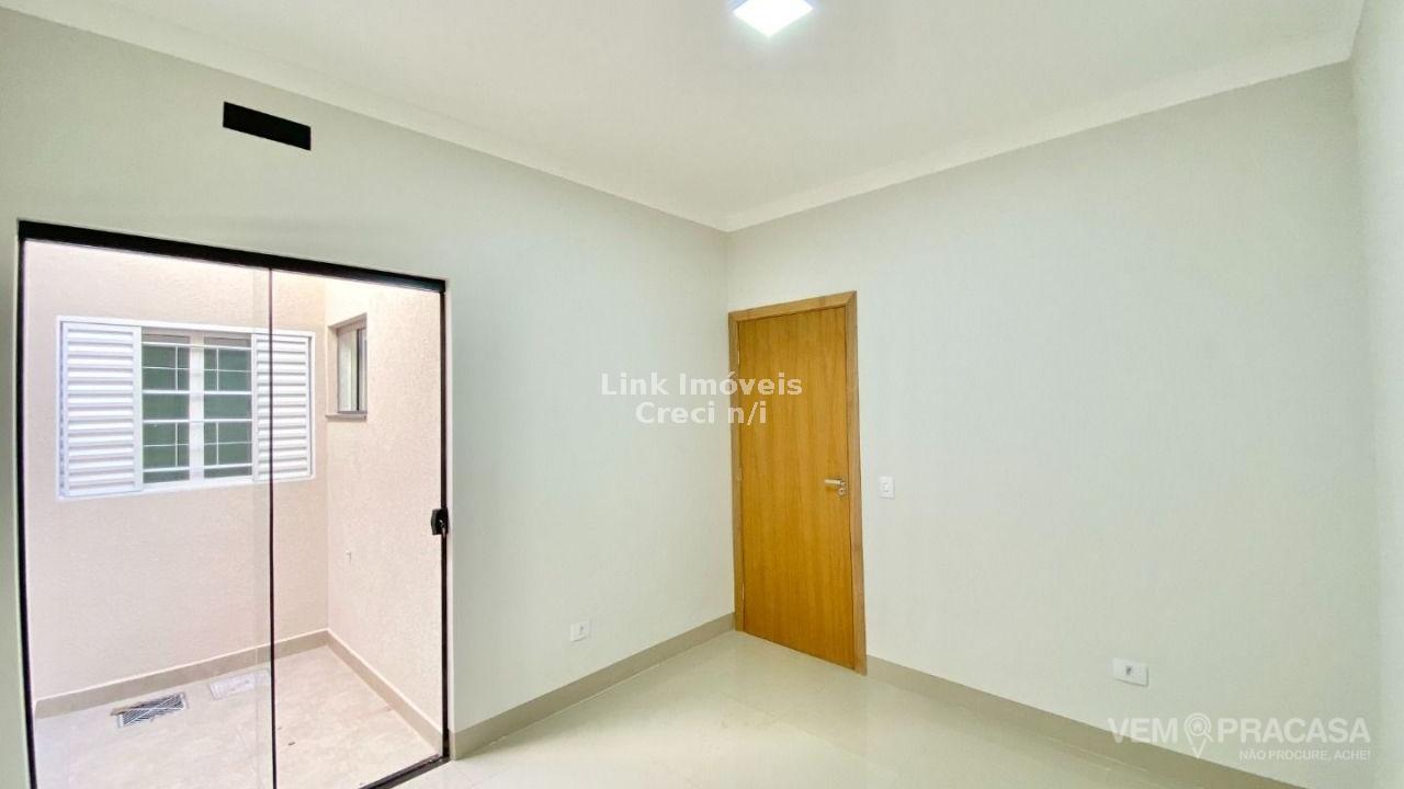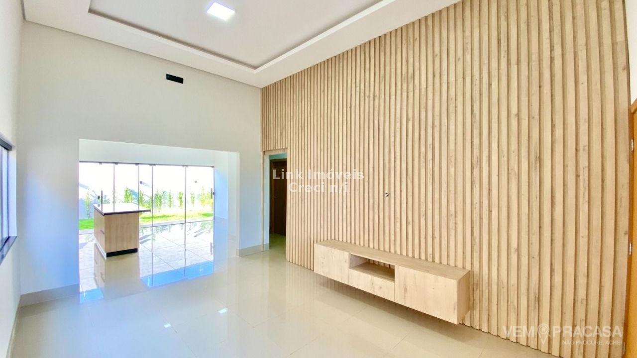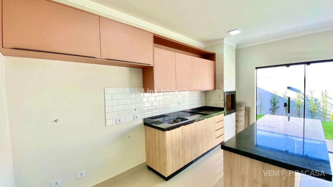Casa com excelente projeto, uma suítes ampla, com jardim de inverno, dois quartos grandes, banheiro social grande, sala ampla com pé direito alto painel de madeira em uma das paredes da sala com porta de correr que separa área intima da casa, cozinha e área gourmet com ambientes integrados e moveis planejados, ilha entregue com tampo de mármore preto com ponto de gás e elétrica, corredor lateral, quintal amplo, pode ser colocado piscina, pontos de ar condicionado com dreno já pré instalados métodos os ambientes, acabamento de gesso na sala e quartos, portão de elevação com 4m de vasão livre, portão social, fachada moderna.