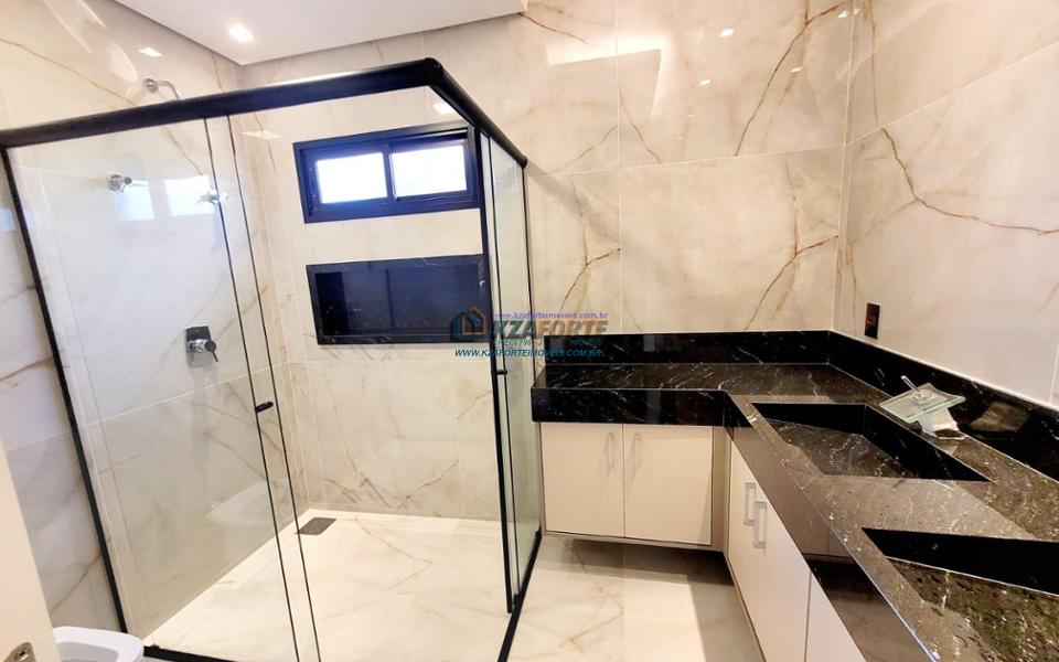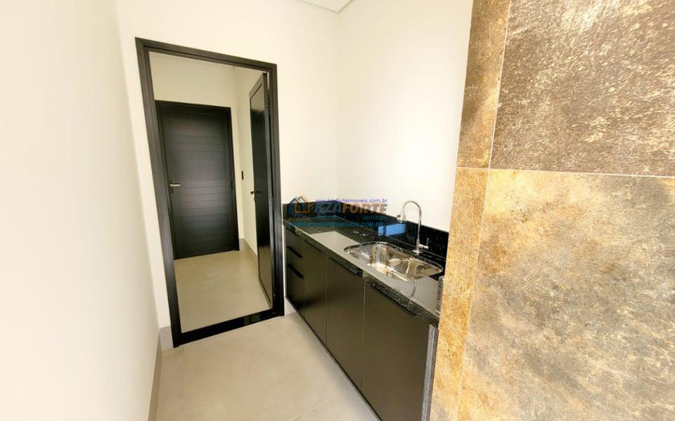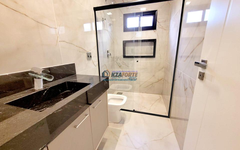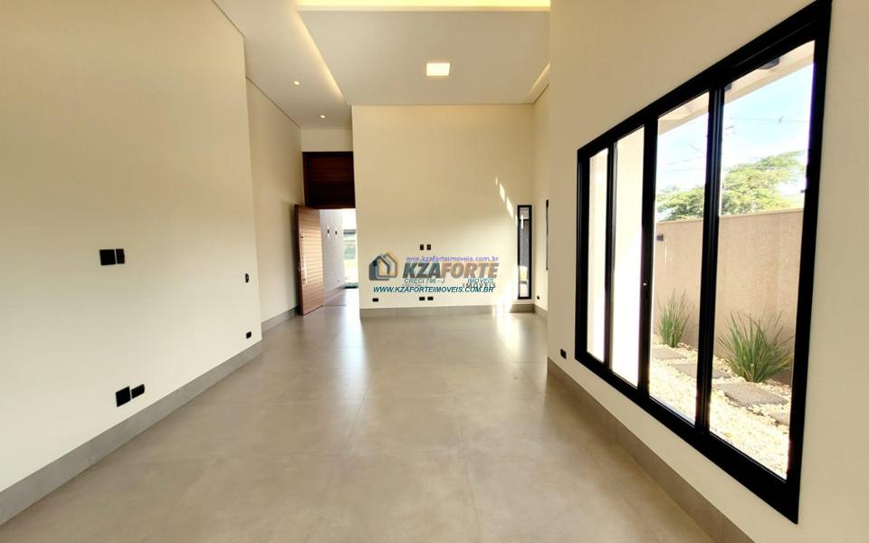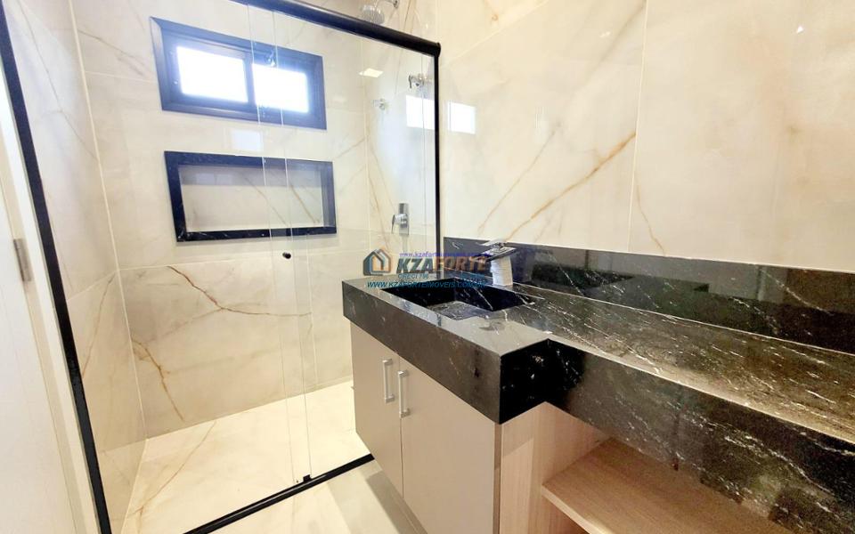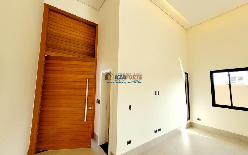 Casa térrea de alto padrão, com arquitetura moderna, sala com pé direito duplo integrada com área gourmet, cooktop em ilha, coifa, churrasqueira com gril, aquecimento de água nas torneiras e chuveiros, banheiros com box, nichos e armários, porta de madeira maciça na entrada, projeto ilumino técnico em LED, sanca em gesso, ambientes com ares condicionados, janelas dos quartos com persianas automatizadas, piscina com aquecimento, piso porcelanato polido, acabamento em mármore e despensa com armários. Condomínio com área de lazer completa, contendo academia, quiosques, salão de jogos, salão de festas, playground, brinquedoteca, piscinas adulto e infantil, quadra poliesportiva e campo de futebol. Valor do Condomínio: R$444,00. Aceita financiamento.