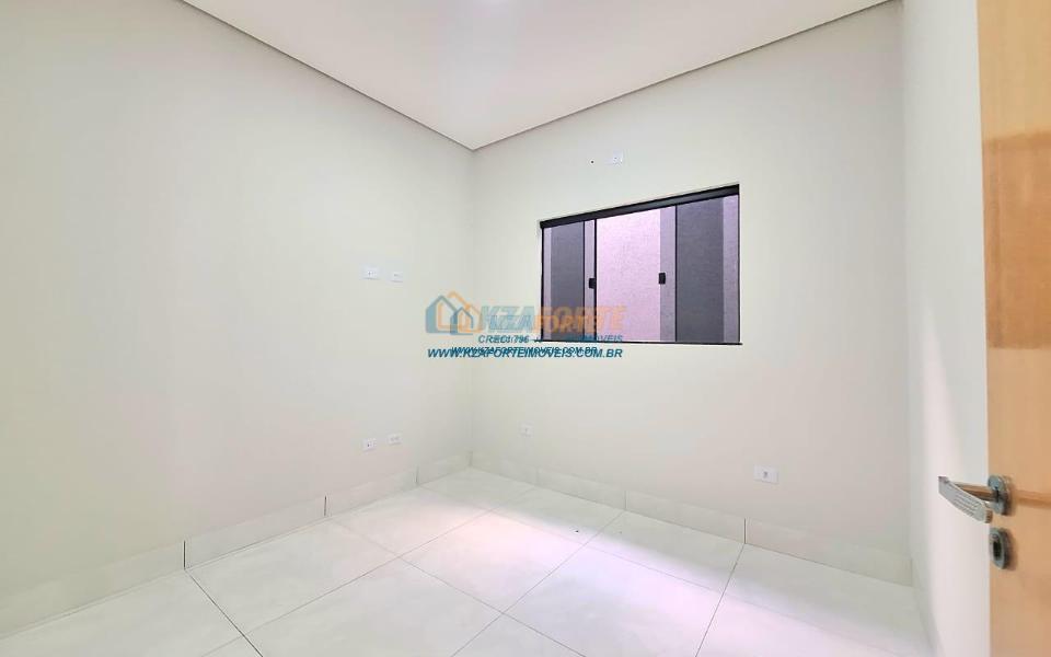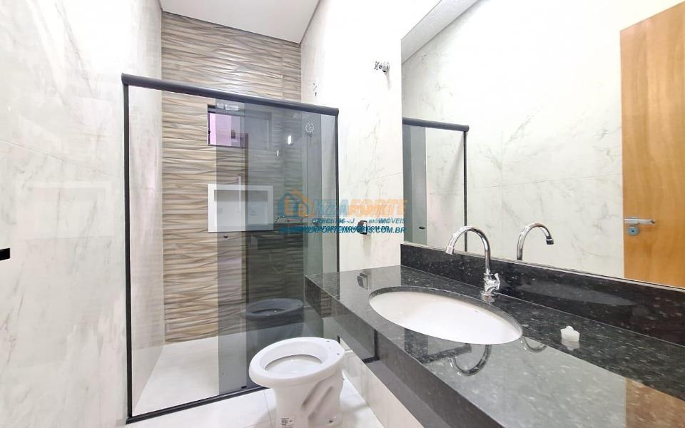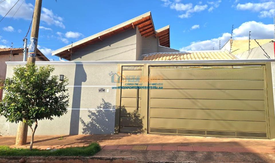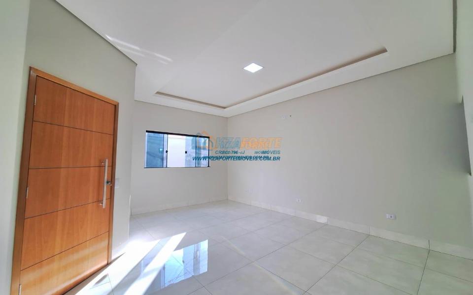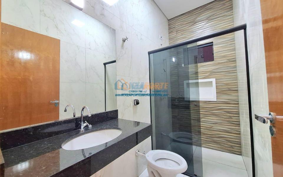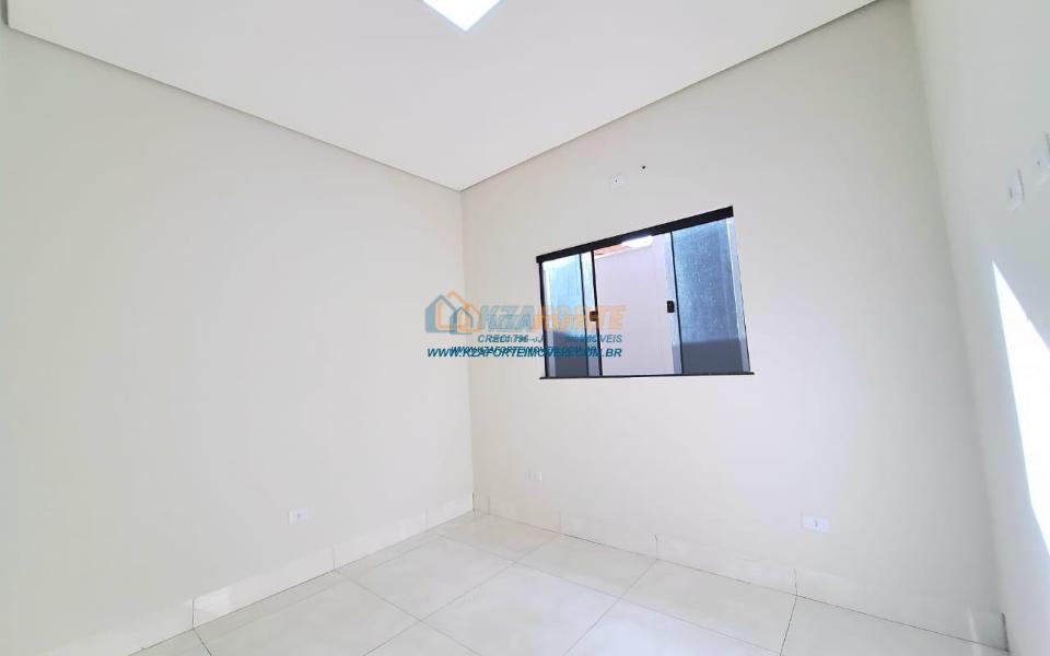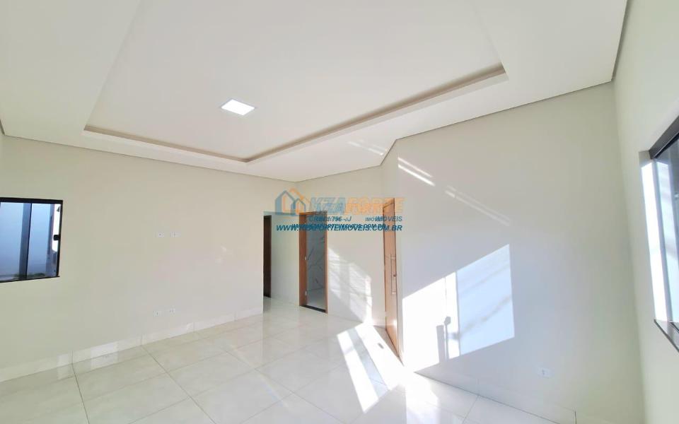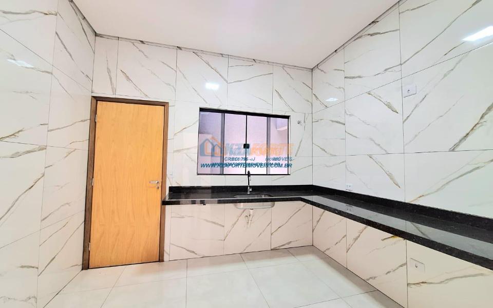 Imóvel de alto padrão, com forro de laje, pisos e revestimentos em porcelanato, possui sala, cozinha com pia e balcão em granito, 1 suíte, 2 quartos, banheiro social, 2 vagas de garagem coberta e 1 descoberta se carro pequeno, área de serviço, área gourmet nos fundos com pia, churrasqueira e lavabo, ducha, espaço livre gramado, caso queira fazer piscina, com corredor nas duas laterais. Excelente localização. Aceita financiamento.