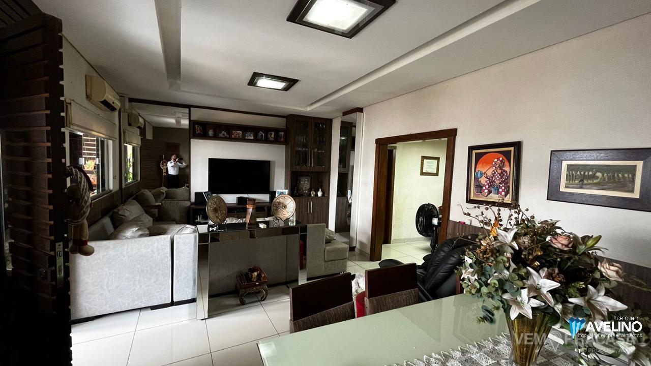 Com 2 suítes planejadas e ar condicionado, 1 quarto com ar condicionado, lavabo, 3 salas (estar, jantar e TV), cozinha planejada, área de serviço fechada, área gourmet com banheiro, 2 vagas de garagem coberta. Corredores laterais.