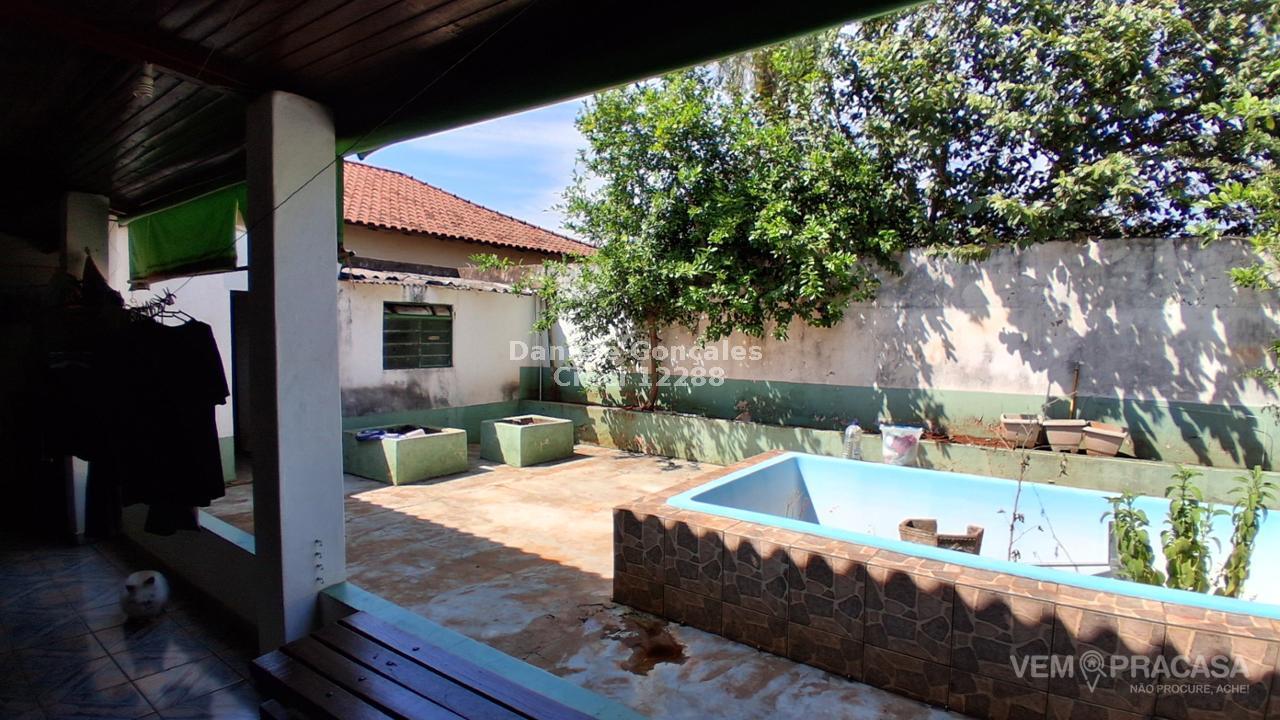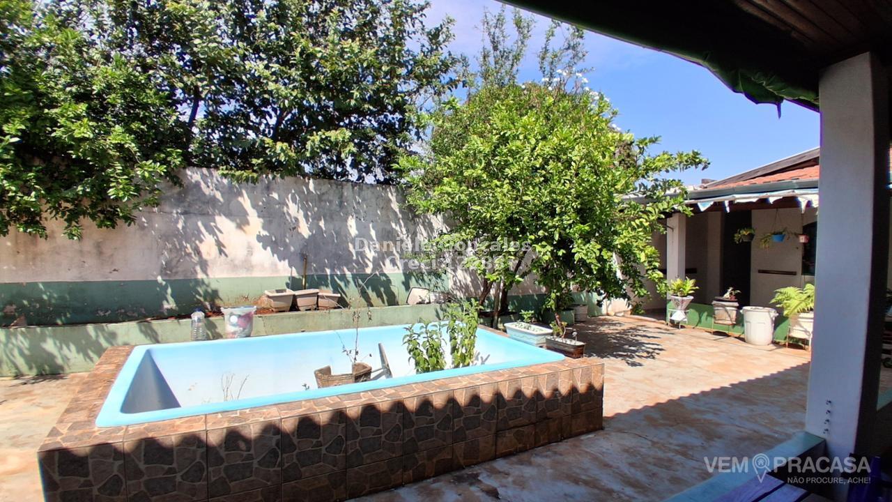 Casa com terreno grande,2 salas,3 quartos , sendo um quarto com banheiro, cozinha e banheiro social, churrasqueira com mureta com balcão, piscina desativada, dois quartos externos com banheiro ,lavanderia coberta e area de despejo