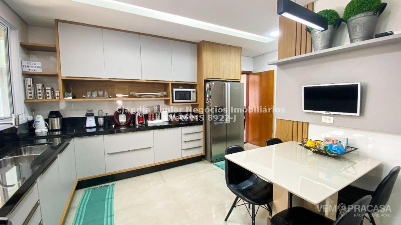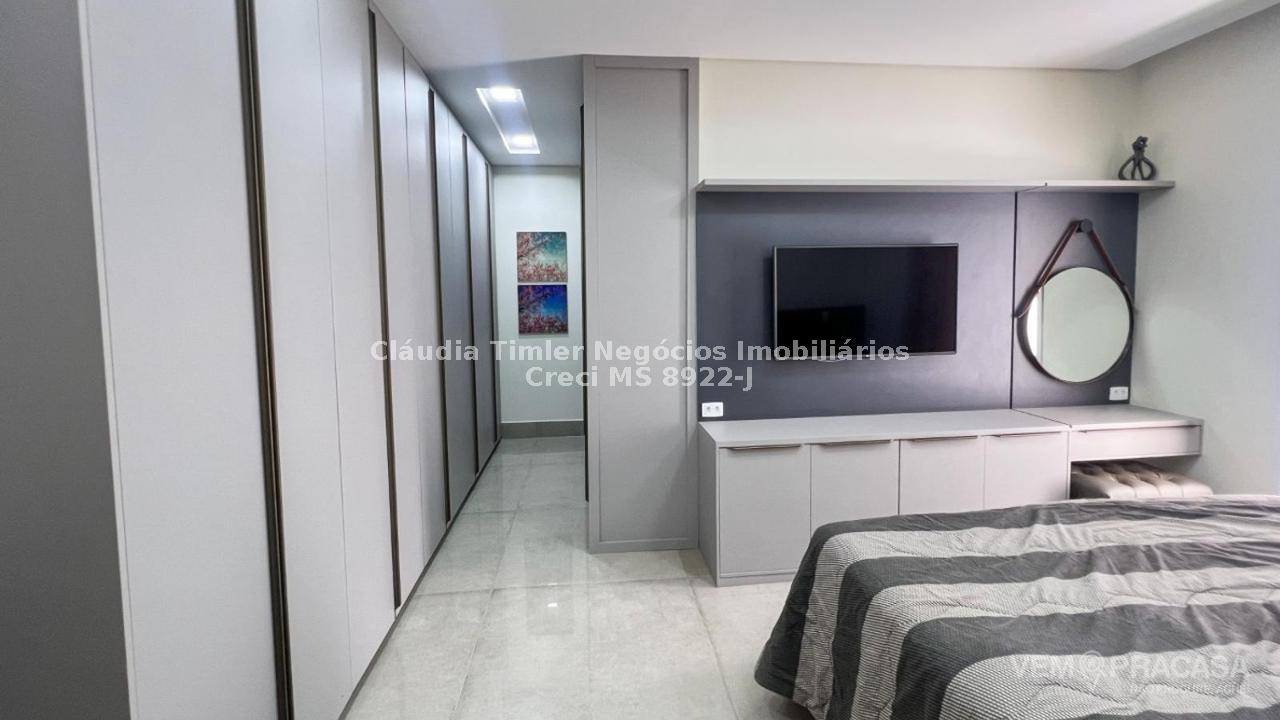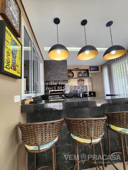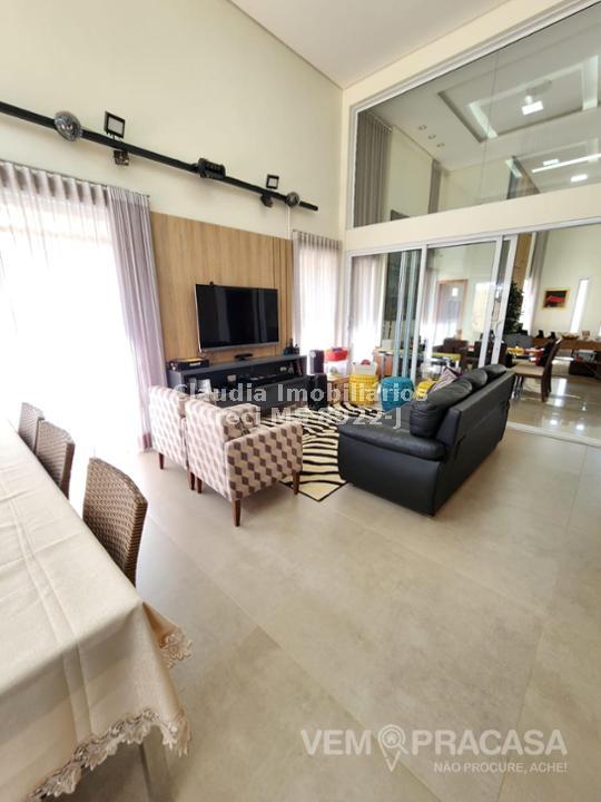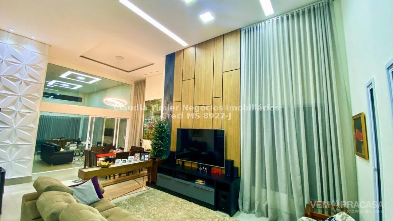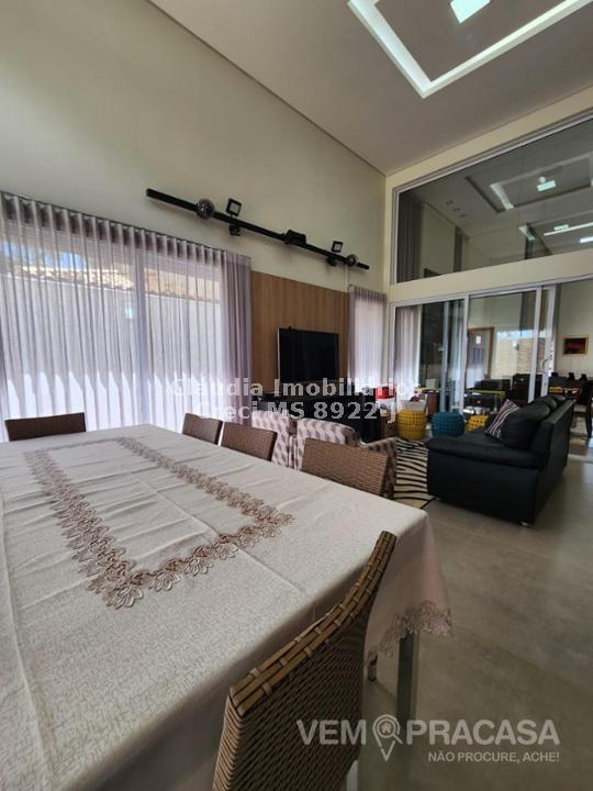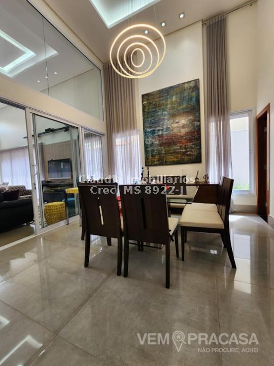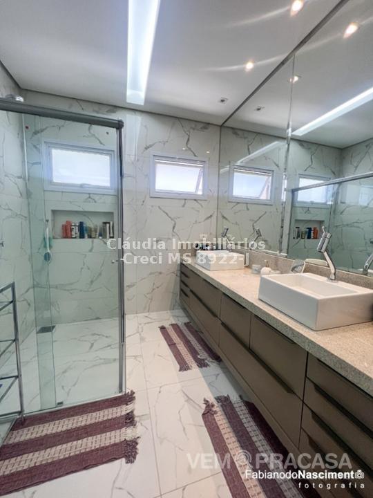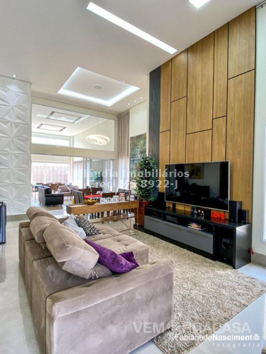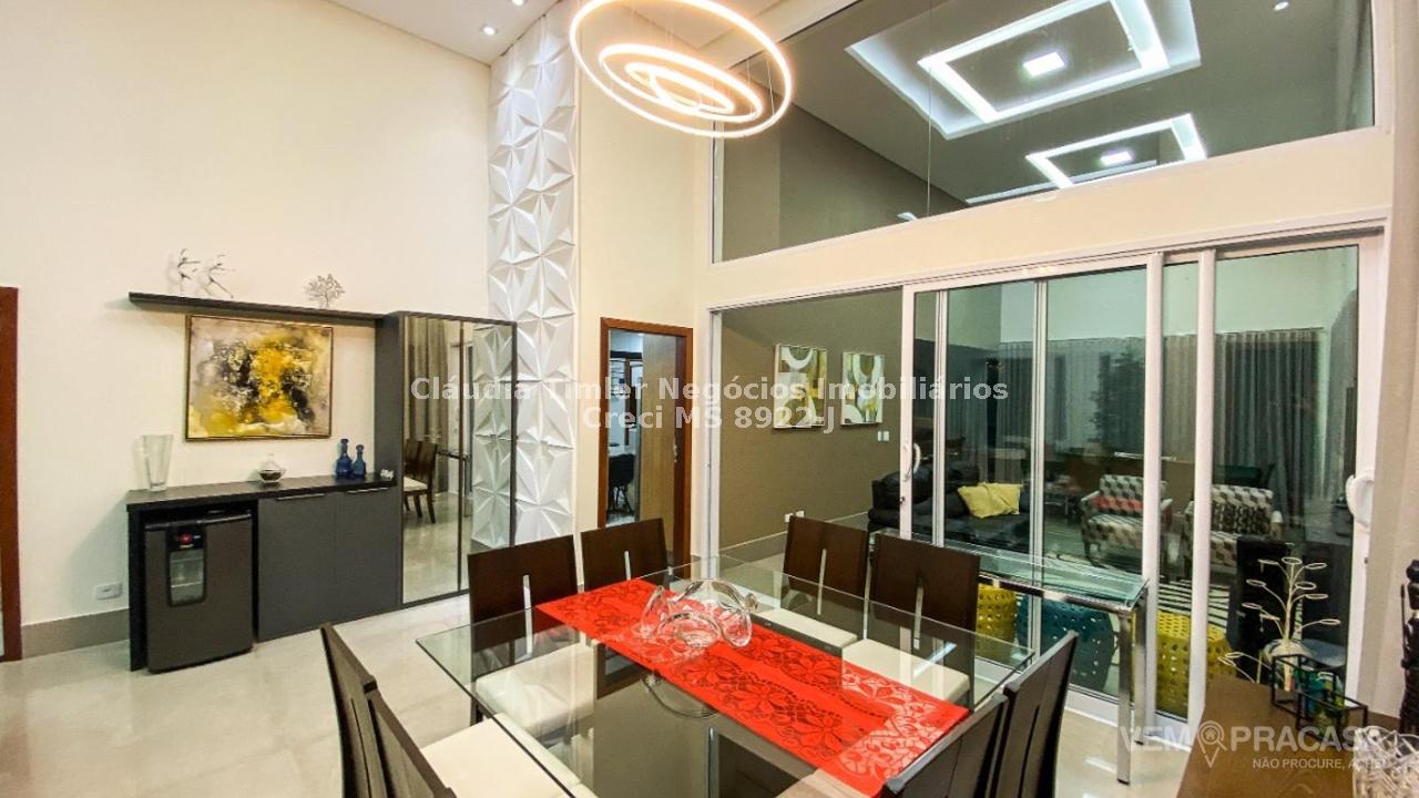 Condomínio fechado. Projeto moderno, sofisticado e com fino acabamento Ambientes bem iluminados e ventilados, com grandes aberturas. Área de Lazer com varanda com pé direito alto, com churrasqueira, jardim e piscina. Salas e Varandas com pé-direito alto, com 4,50m de altura. Rica em detalhes de gesso (rasgos, sancas, molduras e placas nas paredes), porcelanato em toda edificação, esquadrias de alumínio na cor branca, granitos (banheiros, cozinha, área de lazer e piscina). Pintura semi-brilho na parte interna e grafiato na parte externa. Piscina com aquecimento solar, prainha, iluminação e cascata. Chuveiros e torneiras dos banheiros, cozinha e da churrasqueira com água quente, torneiras monocomando, sistema de aquecimento por boiler. Ambientes com planejados na casa toda. Ambientes: Garagem para 2 veículos, sala de visita/tv, sala de jantar, lavabo, cozinha, área de serviço, depósito, varanda para 2 ambientes fechada com portas, churrasqueira com balcão, banheiro lazer, piscina com prainha, cascata e aquecimento, roupeiro, 2 suites e 1 suite com closet e banheiro com duas cubas.