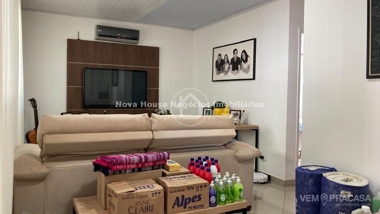 Casa no condomínio Parque das Figueiras Monte Castelo A Casa conta com 2 suítes mais 1 quarto, Banheiro social, Sala para 2 ambientes e Cozinha com armários planejados. Garagem coberta para 2 carros. Suíte casal com aparelho de ar Todos os banheiros com box e armários Suíte solteiro com armário Planejado Varanda Gourmet nos fundos Área de serviço Sistema solar com 10 placas Terreno 10x20