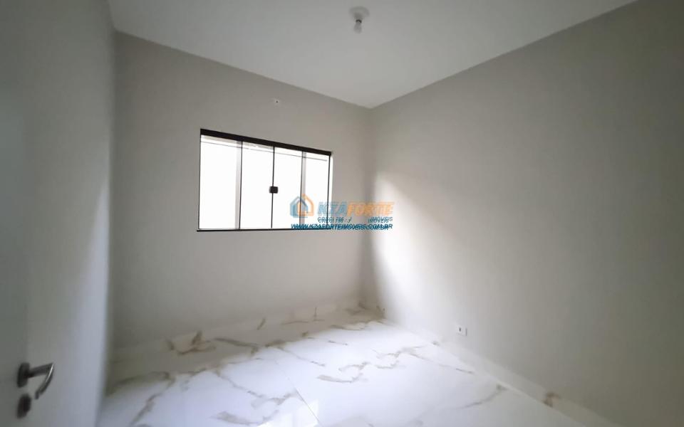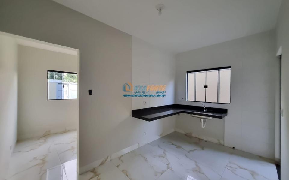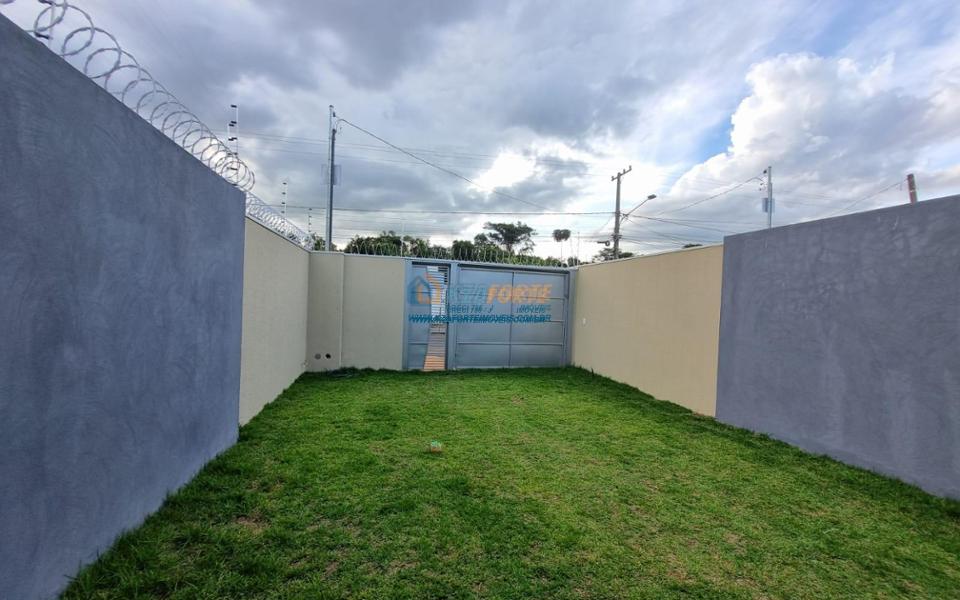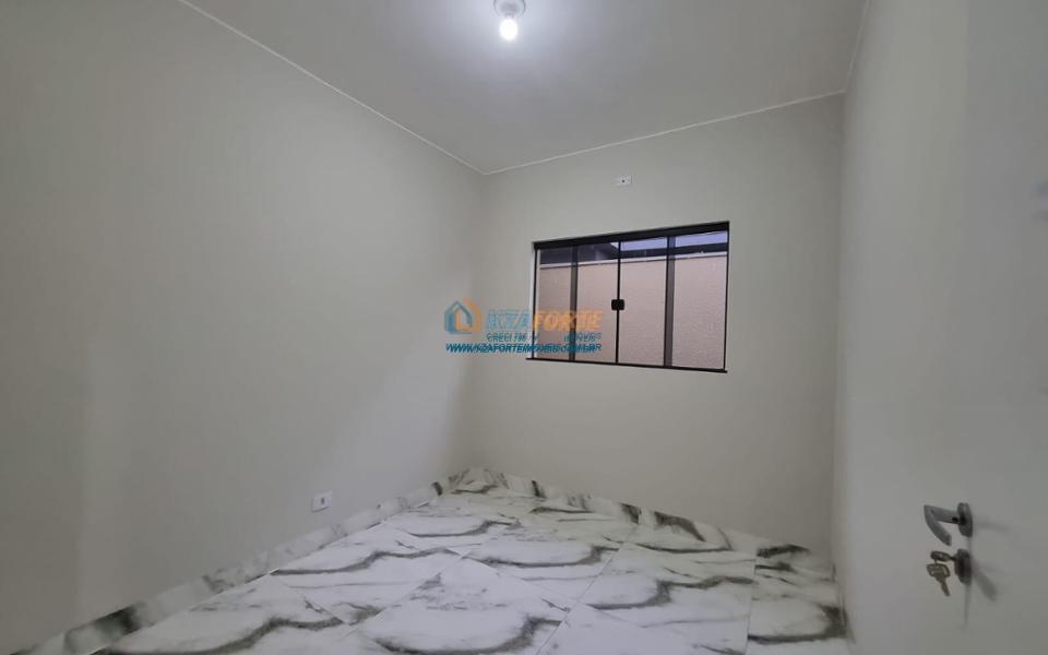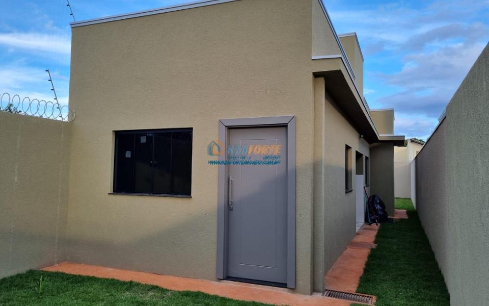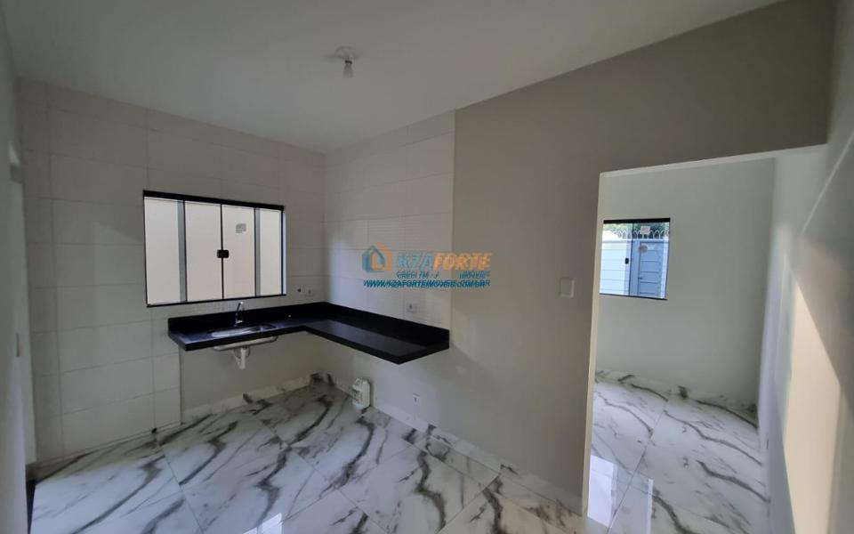 Imóvel novo com forro de laje e portão de elevação sem motor, contendo sala, banheiro social, 1 suíte, 1 quarto, cozinha e área de serviço. Aceita financiamento.