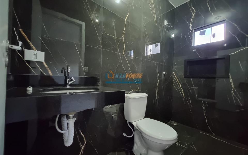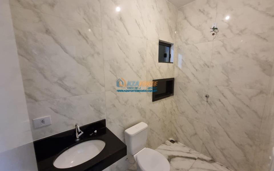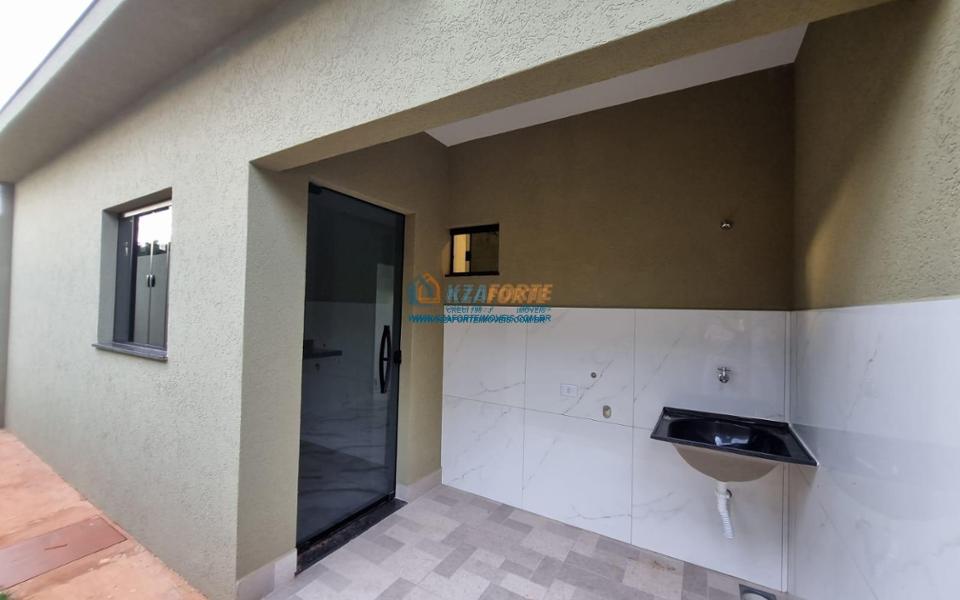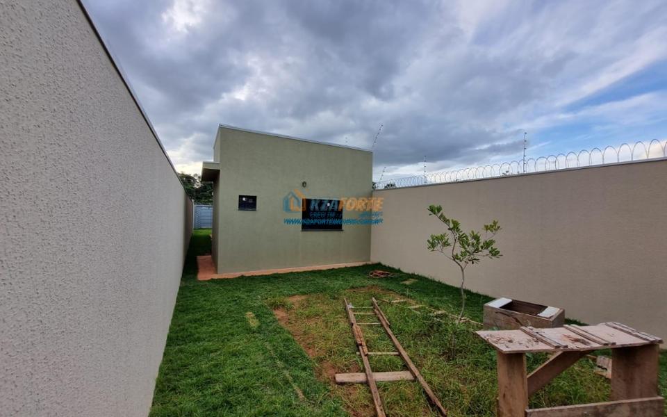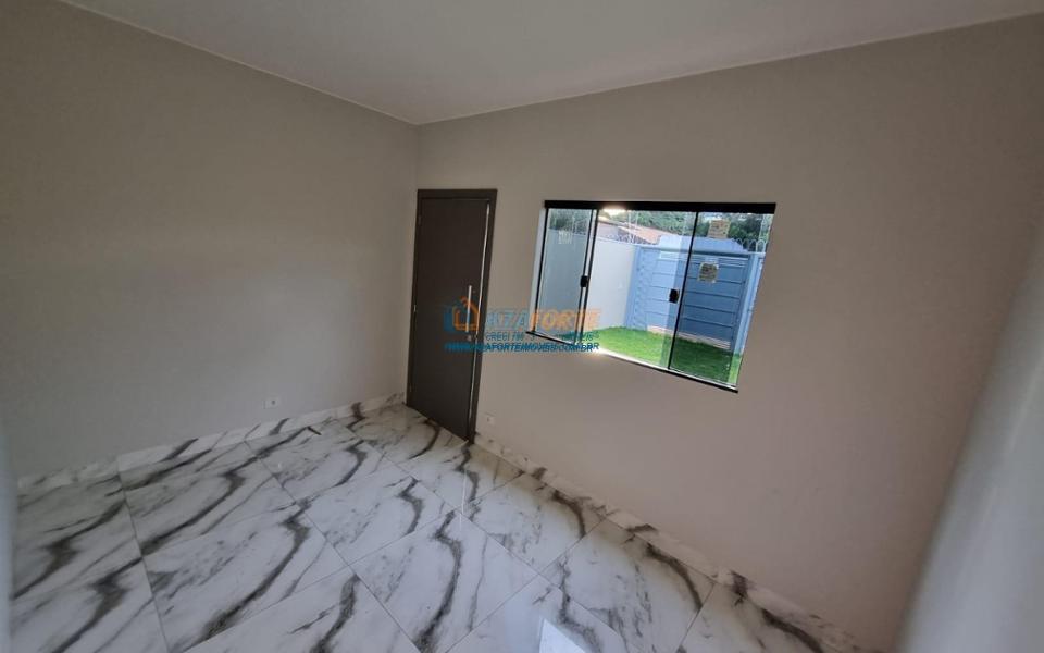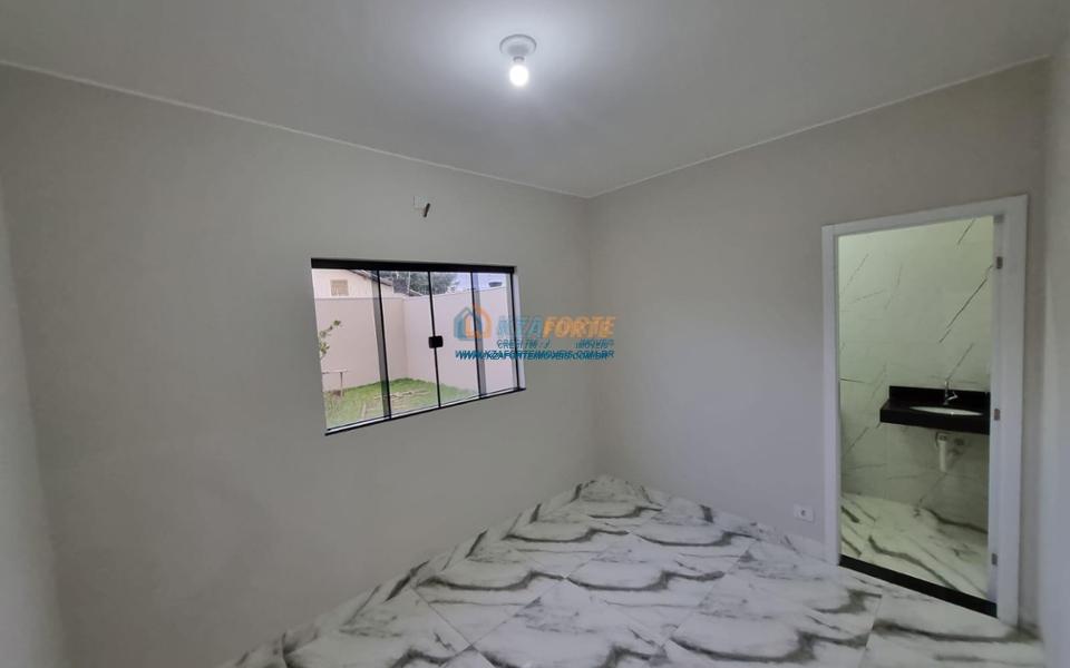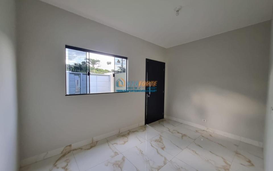 Imóvel novo com forro de laje e portão de elevação sem motor, contendo sala, banheiro social, 1 suíte, 1 quarto, cozinha e área de serviço. Aceita financiamento.