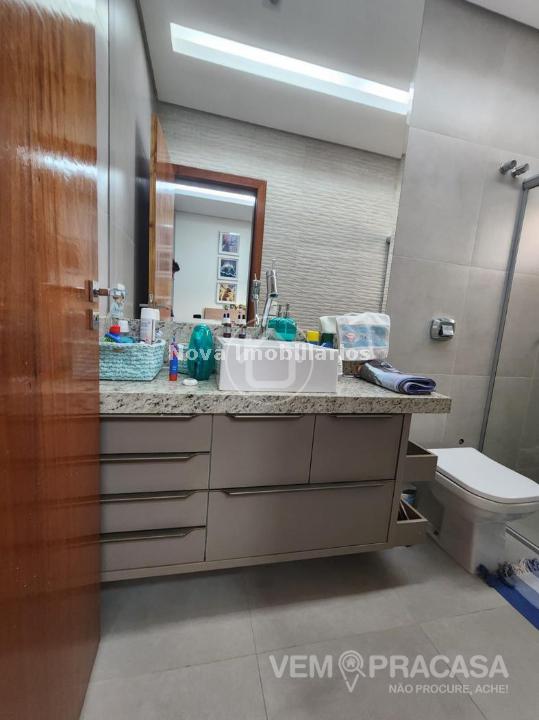 Descrição Complementar: Área Total privativa (248,00m²) - sento área construída 231,01 e 17,93 m² área de piscina. Projeto moderno, sofisticado e com fino acabamento. Ambientes bem iluminados e ventilados, com grandes aberturas. Área de Lazer com varanda com pé direito alto, com churrasqueira, jardim e piscina. Salas e Varandas com pé-direito alto, com 4,50m de altura. Rica em detalhes de gesso (rasgos, sancas, molduras e placas nas paredes), porcelanato em toda edificação, esquadrias de alumínio na cor branca, granitos (banheiros, cozinha, área de lazer e piscina). Pintura semi-brilho na parte interna e grafiato na parte externa. Piscina com aquecimento solar, prainha, iluminação e cascata. Chuveiros e torneiras dos banheiros, cozinha e da churrasqueira com água quente, torneiras monocomando, sistema de aquecimento por boiler. Ambientes com planejados na casa toda. Ambientes: - Garagem para 2 veículos, - Sala de visita/TV, - Sala de jantar, - Lavabo, - Cozinha, - Área de serviço, - Depósito, - Varanda para 2 ambientes fechada com portas, - Churrasqueira com balcão, - Banheiro lazer, - Piscina com prainha, - Cascata e aquecimento, - Roupeiro, - 2 Suítes - 1 Suíte com closet e banheiro com duas cubas.
