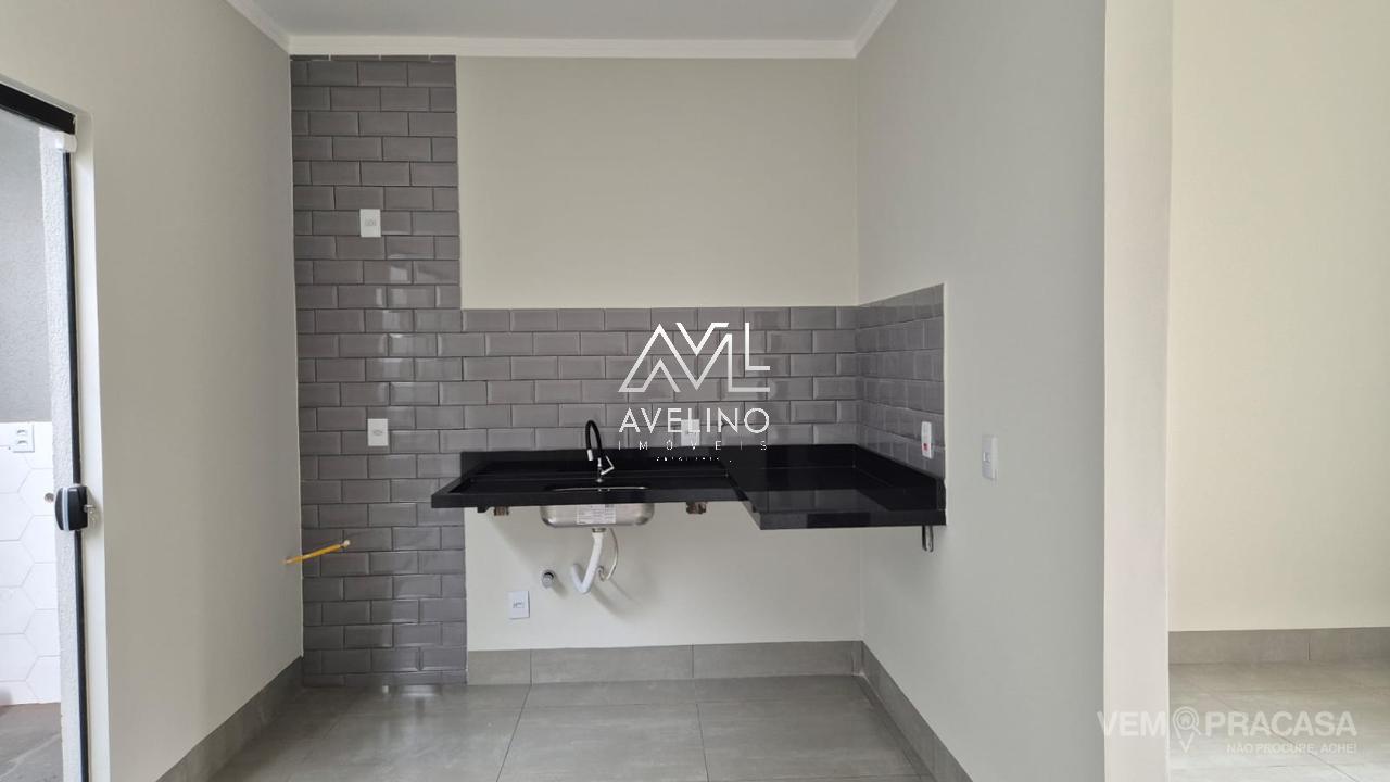 1 Suite, 1 Quarto, Banheiro, Sala com dois ambientes, Cozinha, Area de Servico, Area Gourmet descoberta e quintal, com 02 vagas de Garagem.