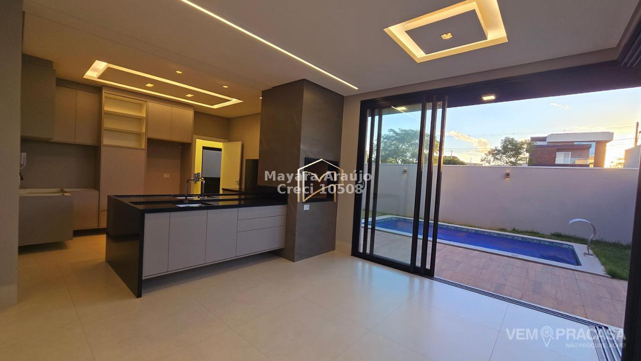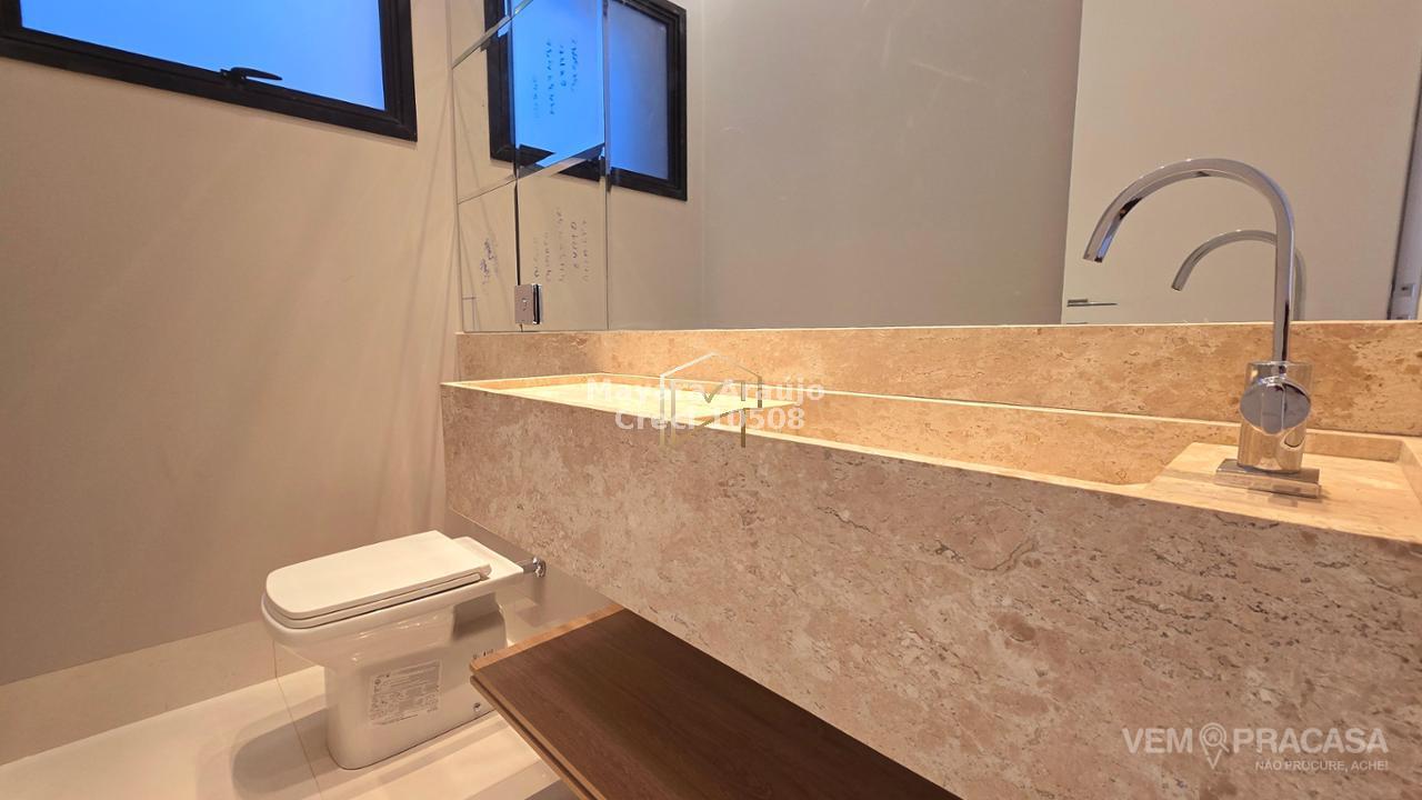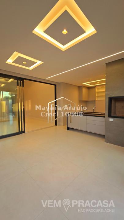 Imóvel com 374m² de área total e 185m² de área construída, com 3 suítes, sendo uma máster com closet. Possui fachada contemporânea, acabamentos em porcelanato, projeto luminotécnico, sancas em gesso e portas brancas. As salas amplas com pé-direito duplo integram-se à cozinha planejada e à área gourmet com churrasqueira. Conta ainda com piscina aquecida, e estacionamento com 4 vagas (2 cobertas).