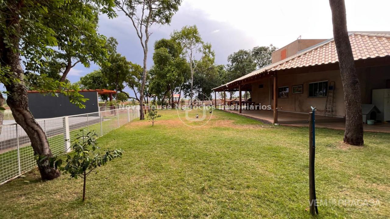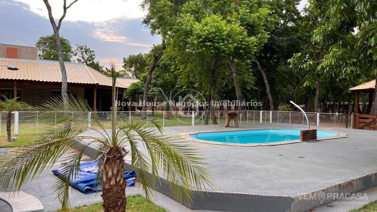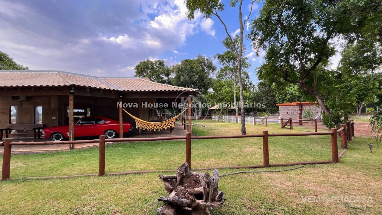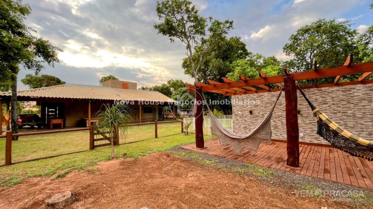 CHACARA COMPLETA: DESCRIÇÃO DO IMÓVEL Aceita permuta Sala de estar Sala de jantar Sala de TV 1 Suíte 1 Apto com a/e 3 Quarto(s) Área de lazer Árvores frutíferas Caixa de água Câmeras de segurança Canil Casa sede Churrasqueira Cozinha Depósito Despensa Granja Jardim Lavanderia Piscina Pomar Chácara muito bem localizada em rua principal, toda murada, irrigada, bem arborizada e poço artesiano 27 metros, quintal sobre a casa cercada, piscina cercada, nova aquecida e iluminada, piquete para cavalo, pateiro com pequena lagoa, galinheiro, pomar, casa com grama ao redor de toda casa, algumas arvores frutíferas plantadas, 9 pés de pequi, 2 pés de mangava, 5 pés de jabuticaba, figo, 3 pés de caju, 11 pés de coco, 3 pés de amora, manga, cajá manga, lichia e 3 pés de limão siciliano. Casa conta com varanda ao redor, sala integrada com cozinha, ambos amplas rica em blindex e mármore 1 suite master com closet 70m², 4 quartos, wc social, área de serviço e despensa.
