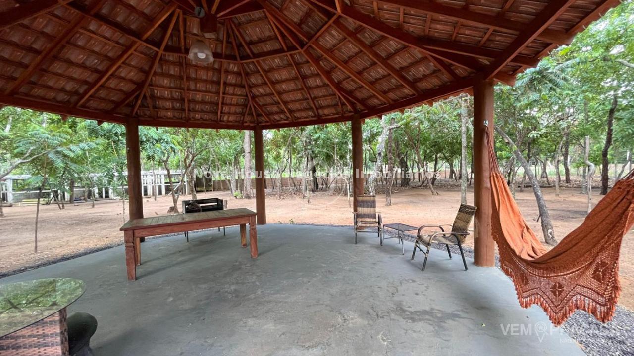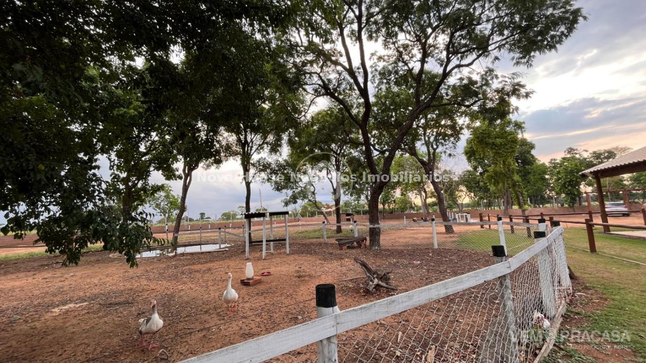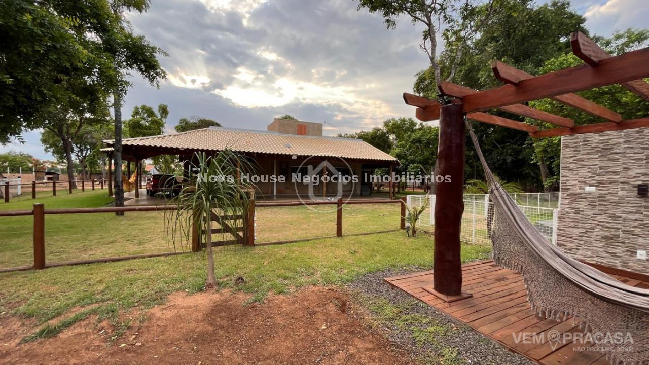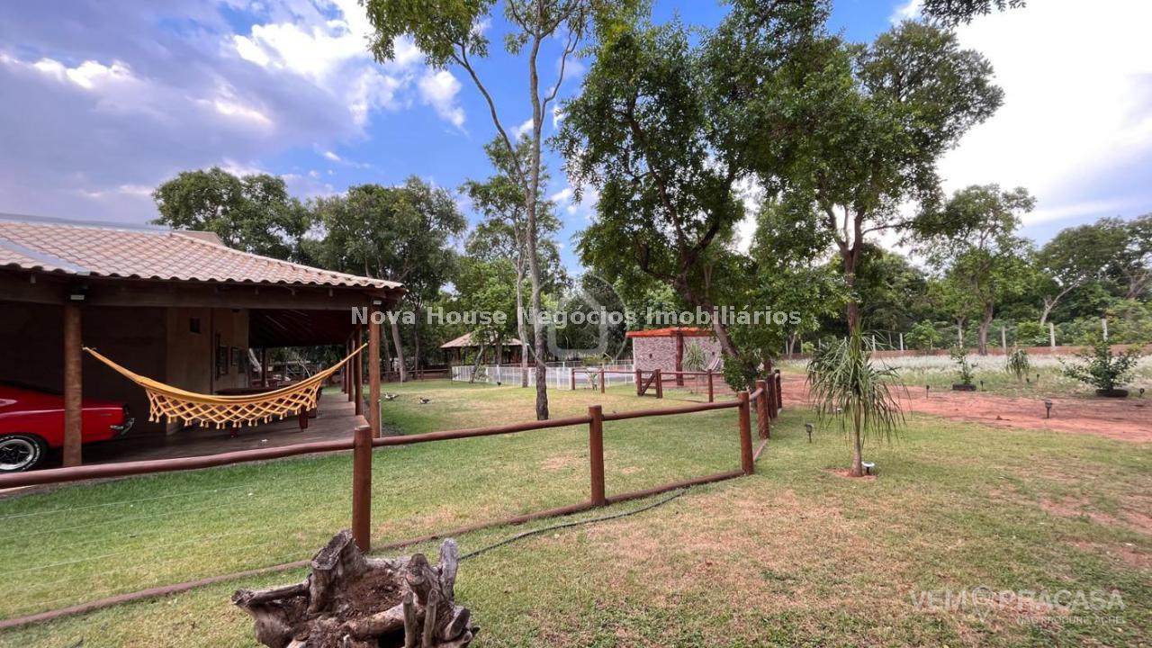 CHACARA COMPLETA: DESCRIÇÃO DO IMÓVEL Aceita permuta Sala de estar Sala de jantar Sala de TV 1 Suíte 1 Apto com a/e 3 Quarto(s) Área de lazer Árvores frutíferas Caixa de água Câmeras de segurança Canil Casa sede Churrasqueira Cozinha Depósito Despensa Granja Jardim Lavanderia Piscina Pomar Chácara muito bem localizada em rua principal, toda murada, irrigada, bem arborizada e poço artesiano 27 metros, quintal sobre a casa cercada, piscina cercada, nova aquecida e iluminada, piquete para cavalo, pateiro com pequena lagoa, galinheiro, pomar, casa com grama ao redor de toda casa, algumas arvores frutíferas plantadas, 9 pés de pequi, 2 pés de mangava, 5 pés de jabuticaba, figo, 3 pés de caju, 11 pés de coco, 3 pés de amora, manga, cajá manga, lichia e 3 pés de limão siciliano. Casa conta com varanda ao redor, sala integrada com cozinha, ambos amplas rica em blindex e mármore 1 suite master com closet 70m², 4 quartos, wc social, área de serviço e despensa.