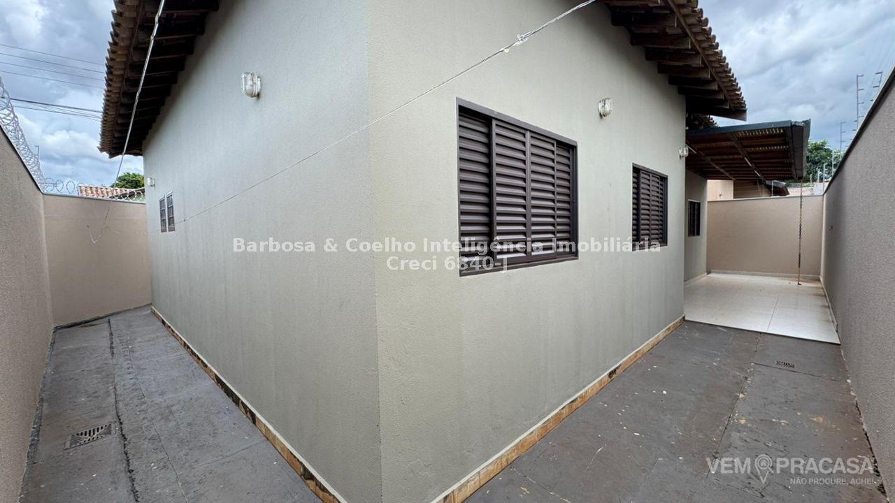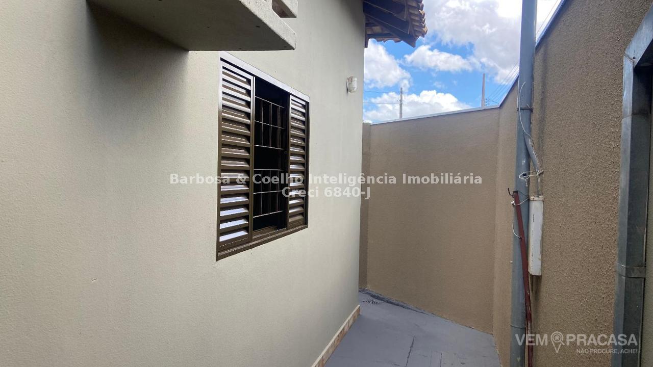 A casa possui 3 quartos, sendo uma suíte. Possui armários planejados no banheiro social e na cozinha. Possui armário na suíte e no WC da suíte. Casa de esquina. Não e geminada. Bem ventilada. Nao possui parede colada no vizinho. Quintal com churrasqueira e área gourmet. Possui cerca elétrica e central de alarme.