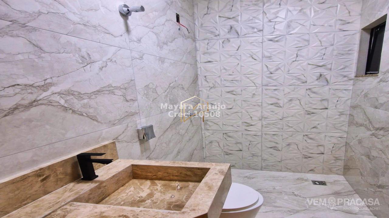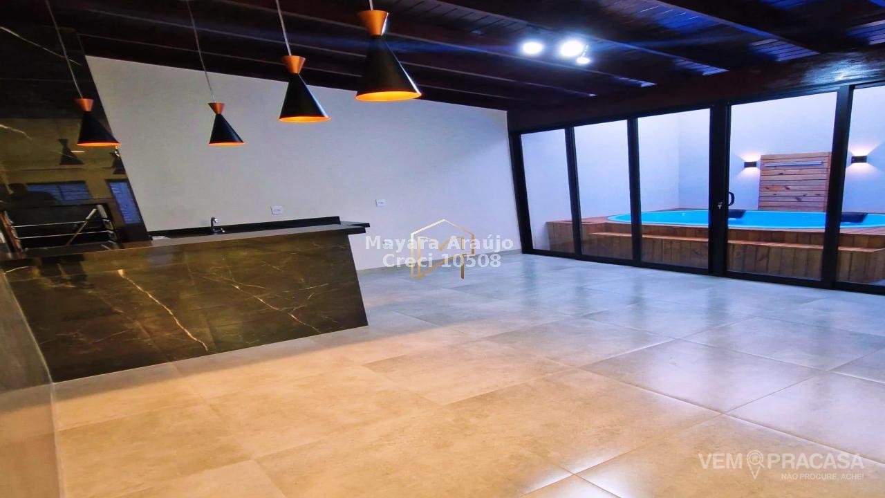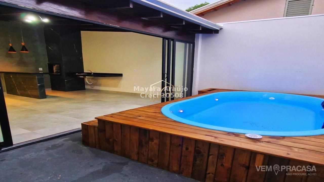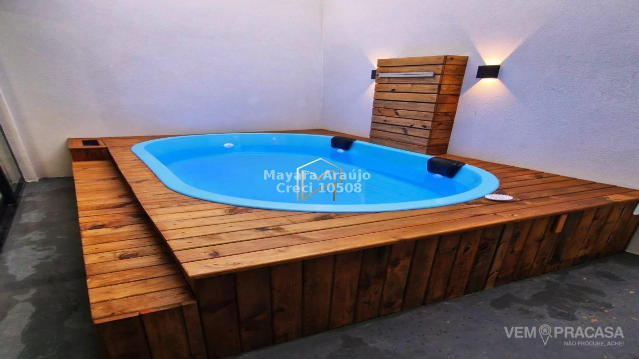 Imóvel com área total de 156m², e área construída de 90m² - 02 quartos, sendo uma suíte + banheiro social + área gourmet coberta e climatizada + churrasqueira a carvão com luz + piscina pequena com hidro e cascata + lavanderia coberta + garagem com 02 vagas, sendo uma coberta.