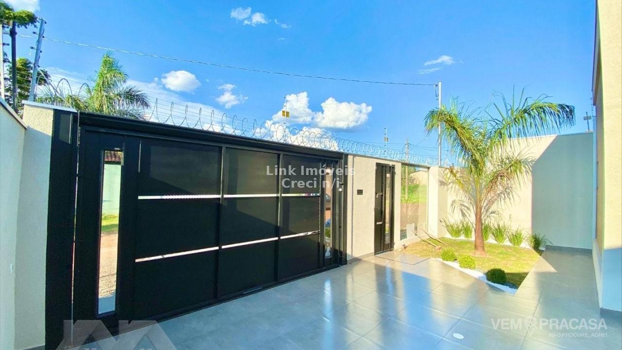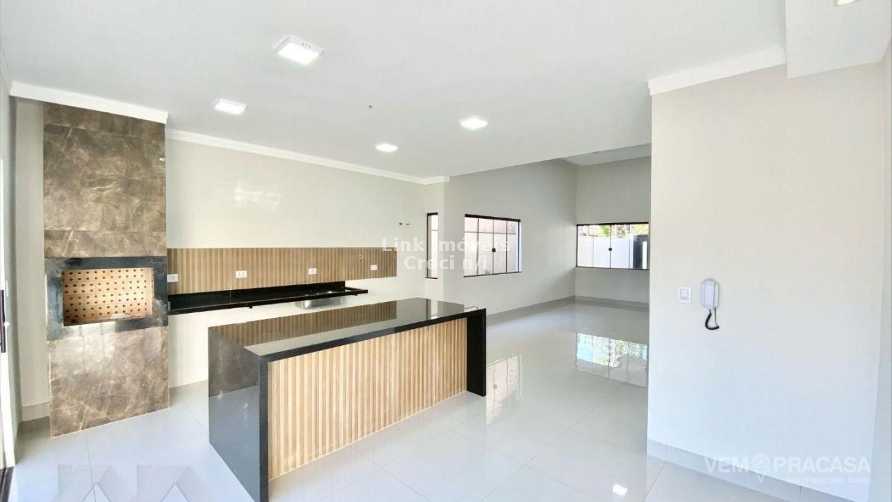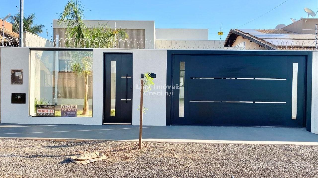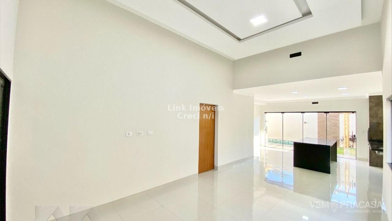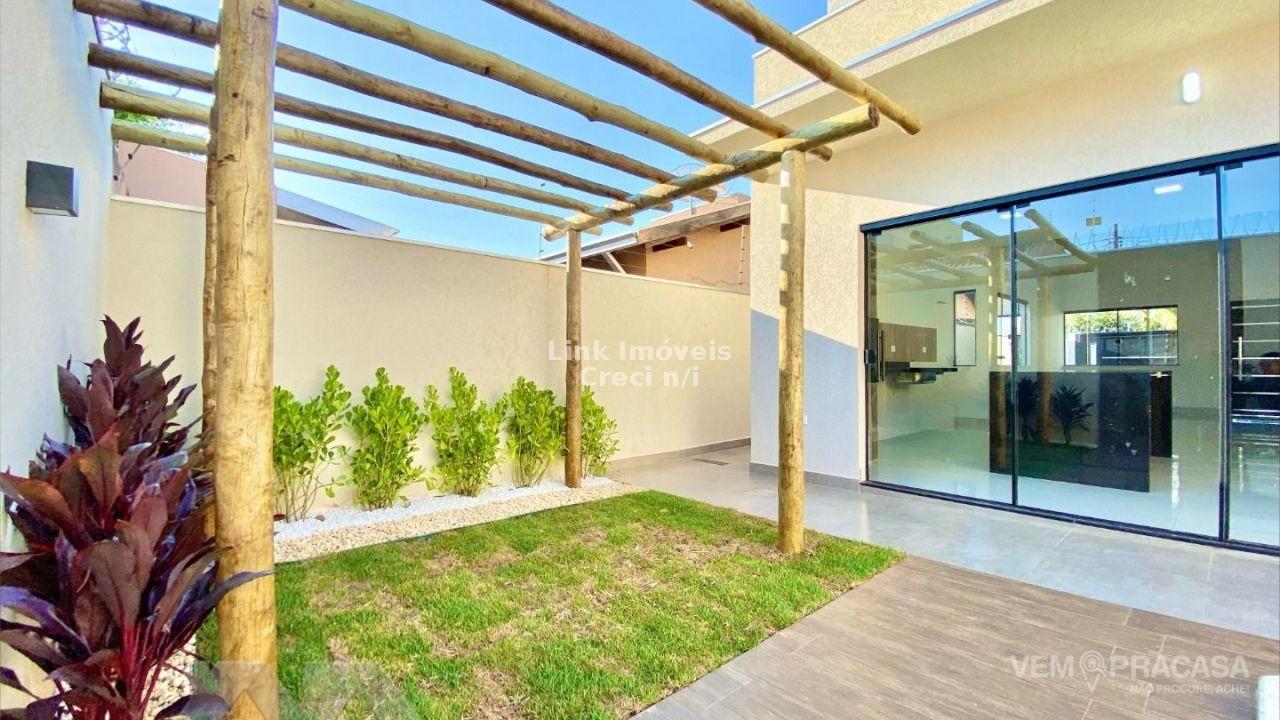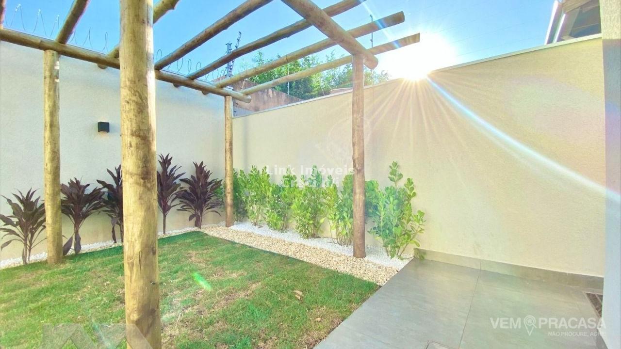 Casa com fino acabamento, sala dois ambientes com o pé direito duplo alto, cozinha gourmet com pia com balcão amplo ilha e churrasqueira, três quartos sendo uma suíte ampla com jardim de inverno privativo, corredor lateral, piscina com cascata e iluminação, pergolado e paisagismo, projeto moderno com acabamentos no teto em gesso e ambiente integrados. Hidráulica para aquecimento solar instalada