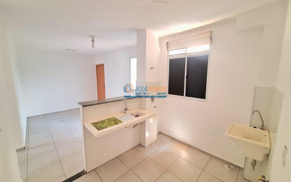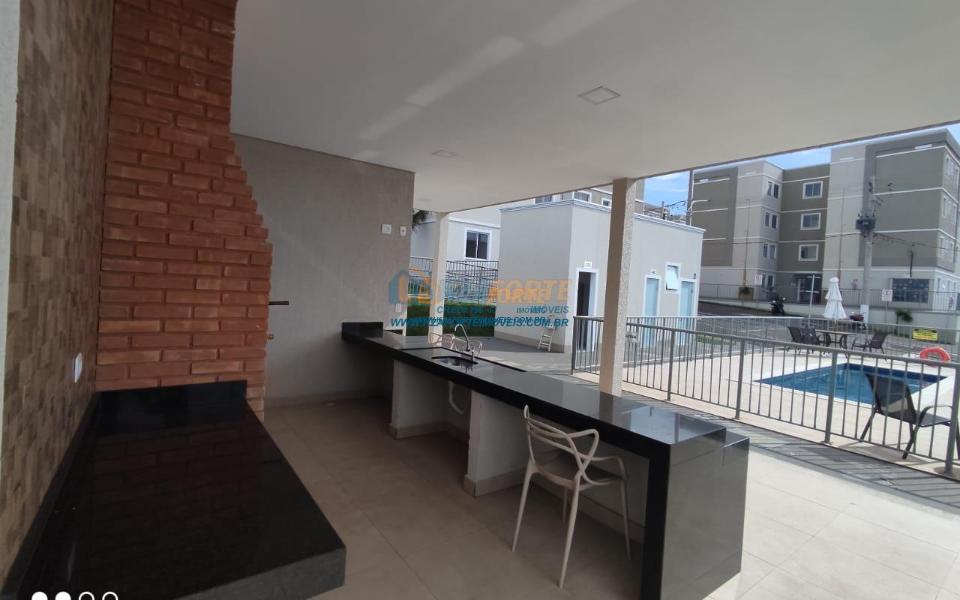 Apartamento térreo contendo sala de estar, cozinha americana, dois quartos, banheiro social, área de serviço e uma vaga de garagem descoberta. Condomínio com portaria 24 horas, área de lazer com piscina adulto e infantil, playground, churrasqueira e salão de festas para 60 pessoas. Excelente localização. Aceita financiamento.