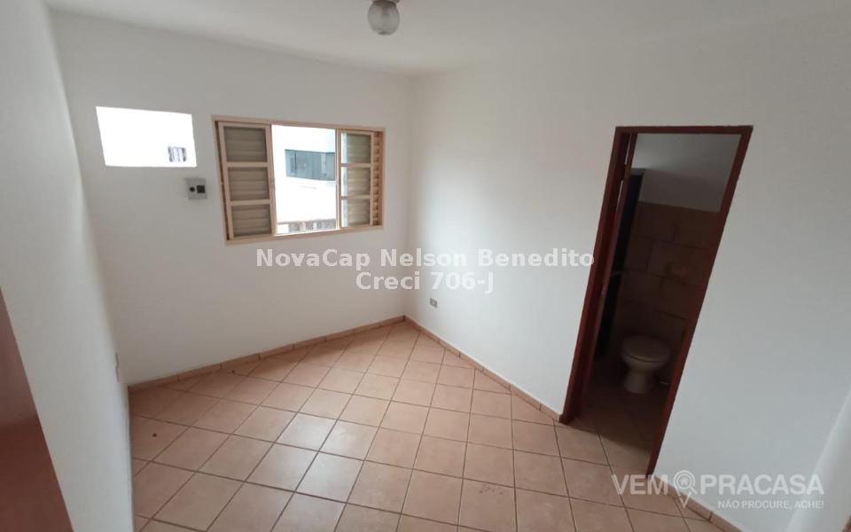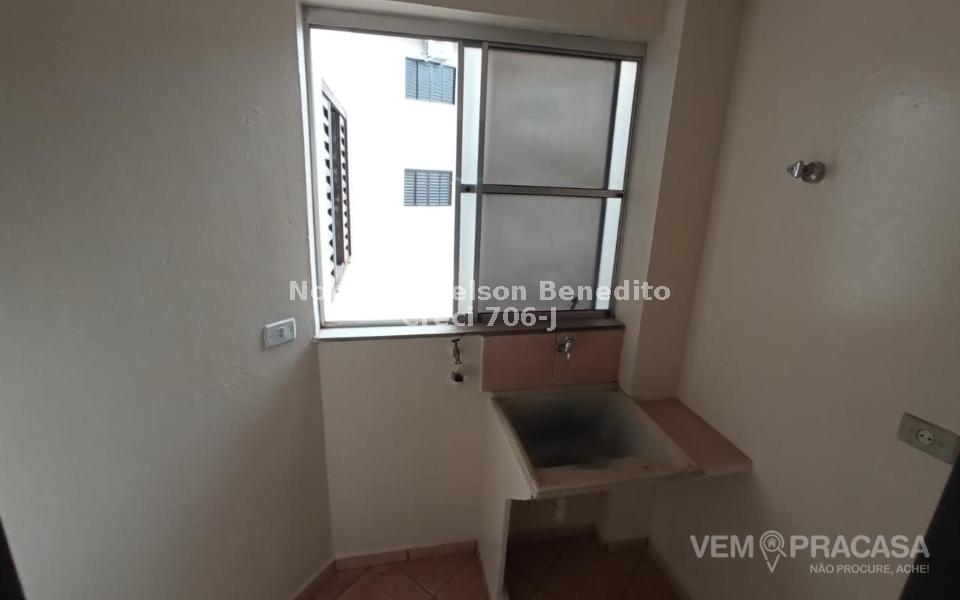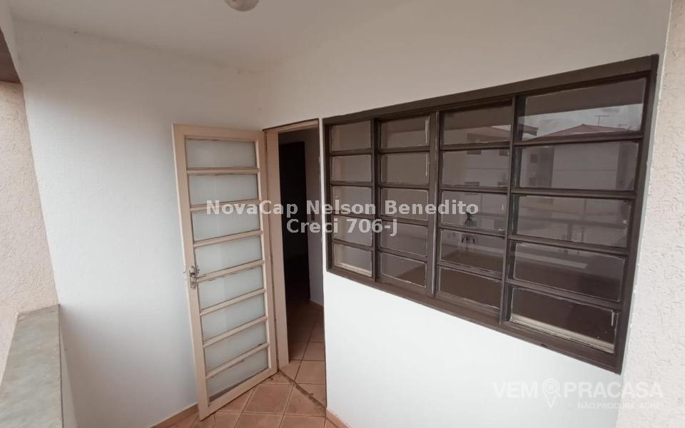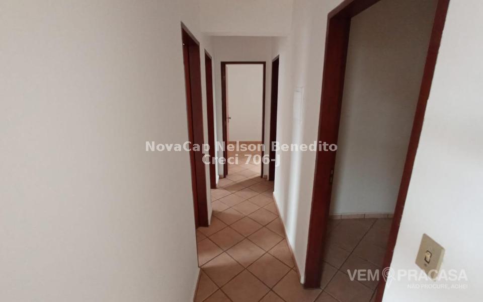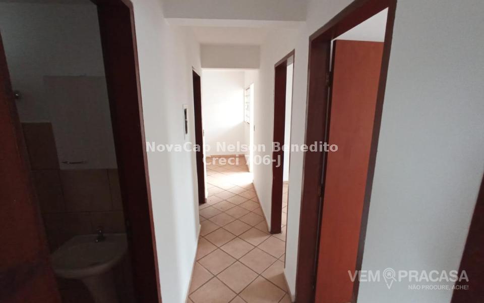 Sala de estar/jantar, três quartos (sendo uma suíte), banheiro social, cozinha e área de serviço.