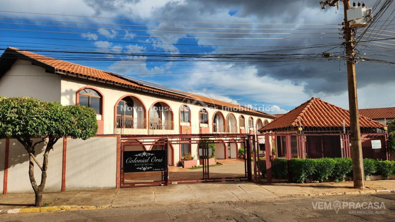 Sobrado Condominio no Giocondo Orsi: Sobrado condomínio estilo colonial, no Giocondo Orsi, composta por: - Sala 2 ambientes - Lavabo - Cozinha ampla com armários - Varanda com área de serviço coberta - 2 vagas de garagem no piso superior: - 1 Suíte ampla com armários, ar condicionado, closet e banheiro - 1 Quarto com ventilador - 1 Quarto com ventilador e sacada com vista para o condomínio - 1 banheiro para atender os dormitórios Condomínio possui portaria em horário comercial, piscina com cercado, área coberta com churrasqueira a carvão e campo de futebol.
