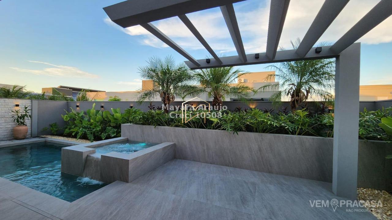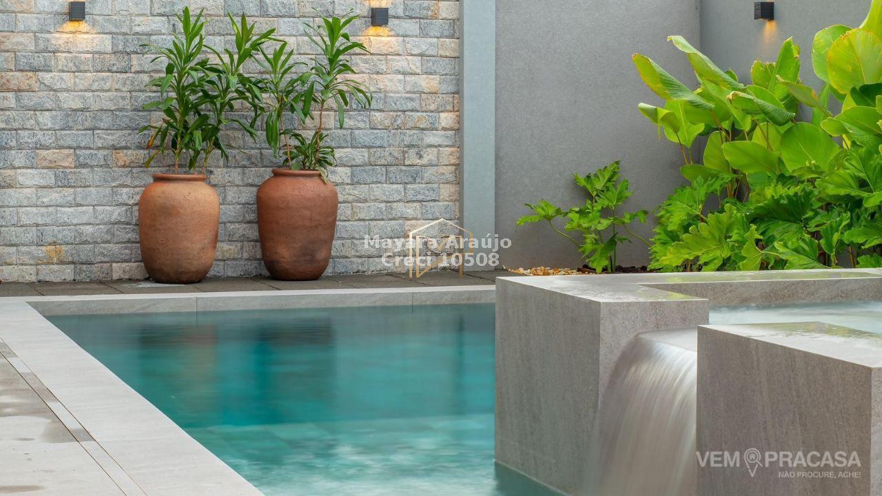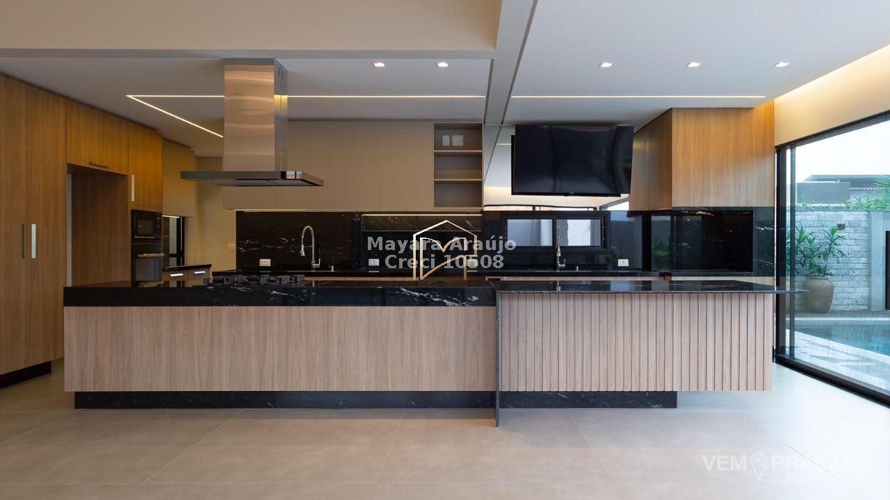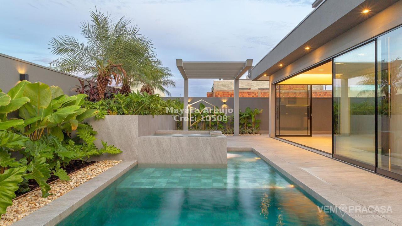 Imóvel com área total de 427,92 m² e área construída de 308,20 m². Possui 4 suítes, sendo 1 no piso térreo e 3 no piso superior, incluindo uma suíte máster. Conta com espaço gourmet totalmente integrado e planejado, piscina aquecida com jacuzzi, sistema de aquecimento de água com boiler de 600 litros, móveis planejados em diversos ambientes e cozinha equipada com cooktop, coifa, forno elétrico e micro-ondas. Área externa com paisagismo, jardim e irrigação automática.