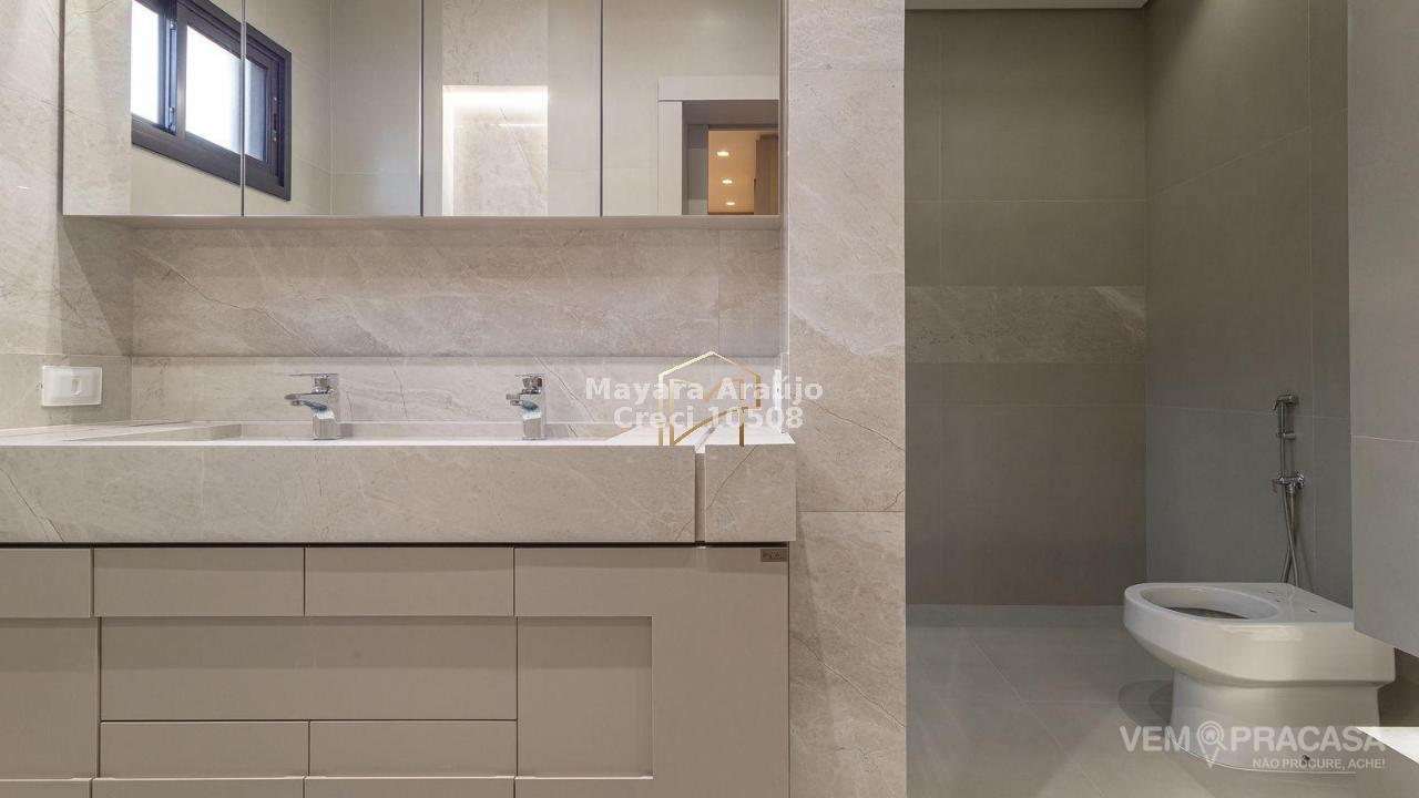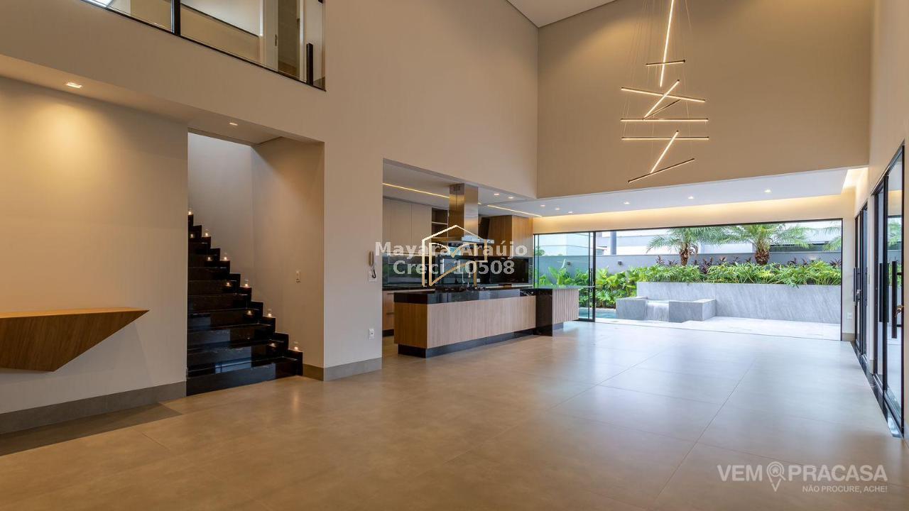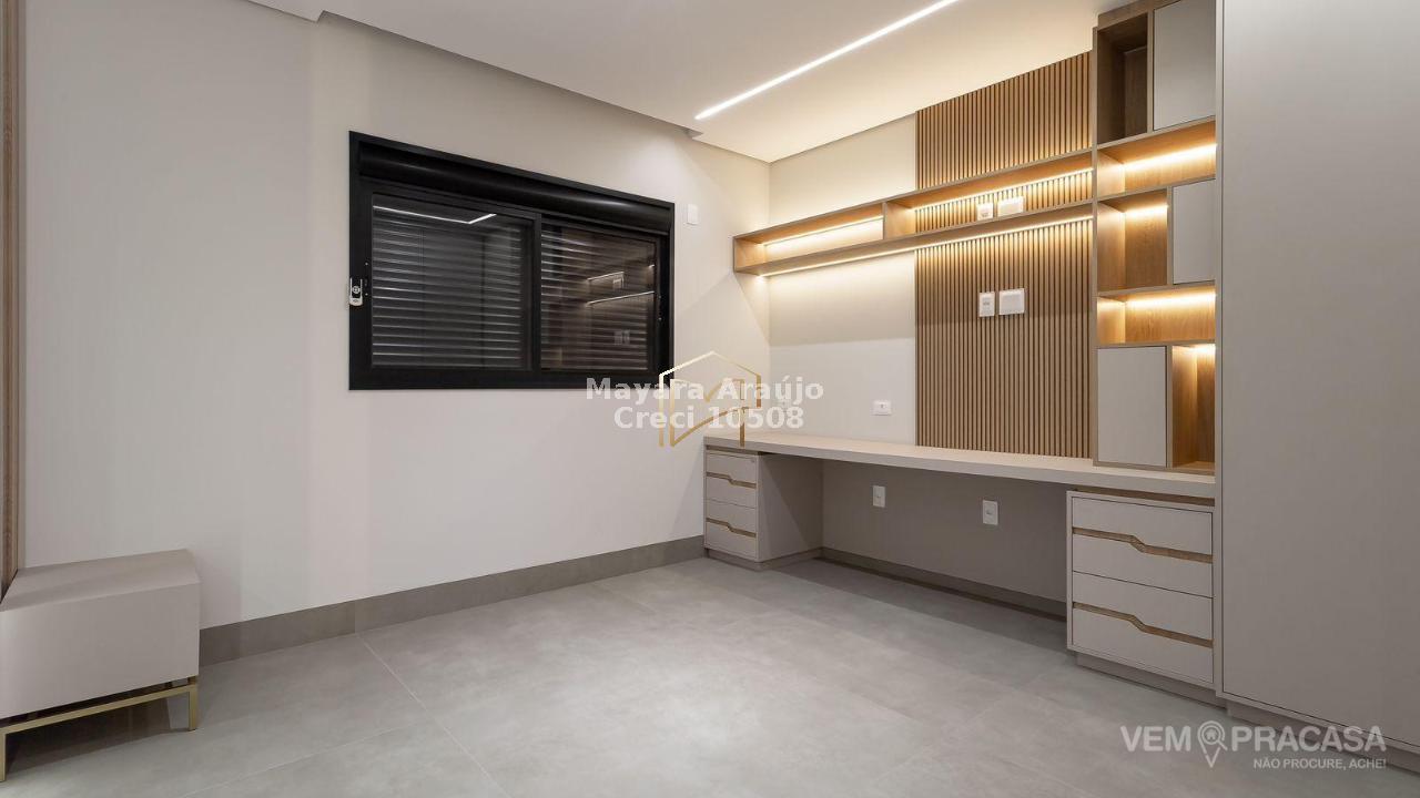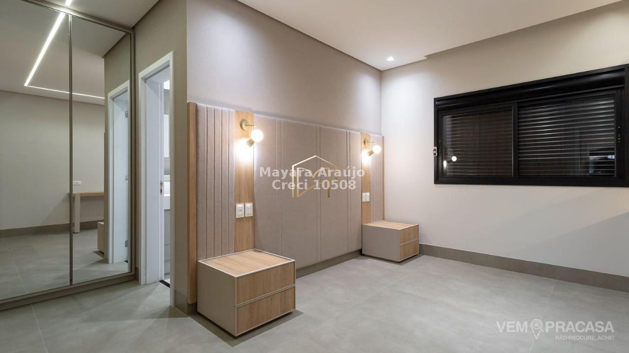 Imóvel com área total de 427,92 m² e área construída de 308,20 m². Possui 4 suítes, sendo 1 no piso térreo e 3 no piso superior, incluindo uma suíte máster. Conta com espaço gourmet totalmente integrado e planejado, piscina aquecida com jacuzzi, sistema de aquecimento de água com boiler de 600 litros, móveis planejados em diversos ambientes e cozinha equipada com cooktop, coifa, forno elétrico e micro-ondas. Área externa com paisagismo, jardim e irrigação automática.
