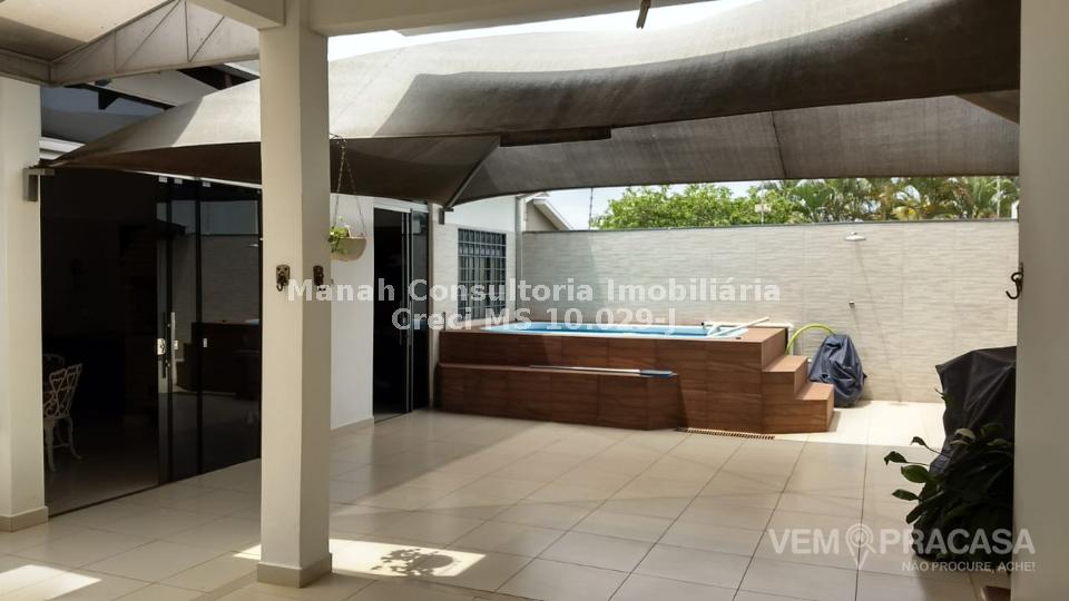 NOBRE Localização. Sobrado com Charmoso acabamento!! Primeiro Piso: Sala de Estar, Sala de Jantar, Lavabo, Cozinha Ampla e Área de Serviço Coberta. MAGNÍFICA Área Gourmet Completa com Piscina WC e Despensa. Piso Superior: 1 Quarto com Sacada para a Piscina, 1 Suíte, 1 Apartamento com Sacada, 1 Quarto, Garagem Coberta para 3 Carros, Imóvel seguro. Com Cômodos Espaçosos e bem Arejados. LOCALIZAÇÃO Privilegiada, Rua Tranquila e Bairro Residencial. Excelente Comércio, Postos de Combustível, Escolas, Postos de Saúde, Unidades de Segurança, Supermercados e Rede Bancária. Estando a poucos minutos do Centro e Shopping Campo Grande. Aceita permuta por Apartamento de menor valor. Para mais detalhes e agendamento de visitas, entre em contato com Imobiliária Manah (67) 9 9334-2660 ou (67) 9 9179-2567. #CM#
