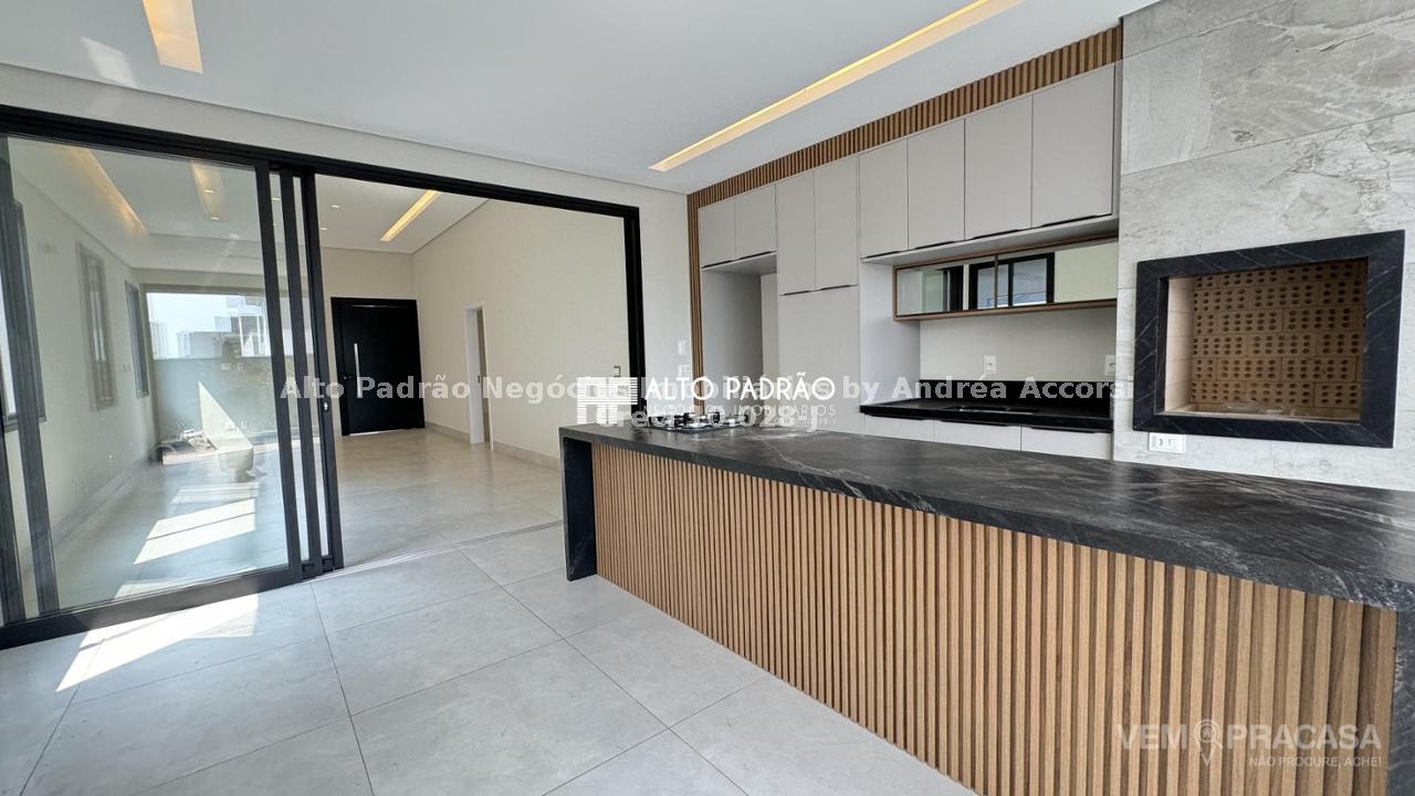 Casa térrea no Alphaville 2, nova, com 3 suítes, living integrado, gourmet com churrasqueira, piscina.